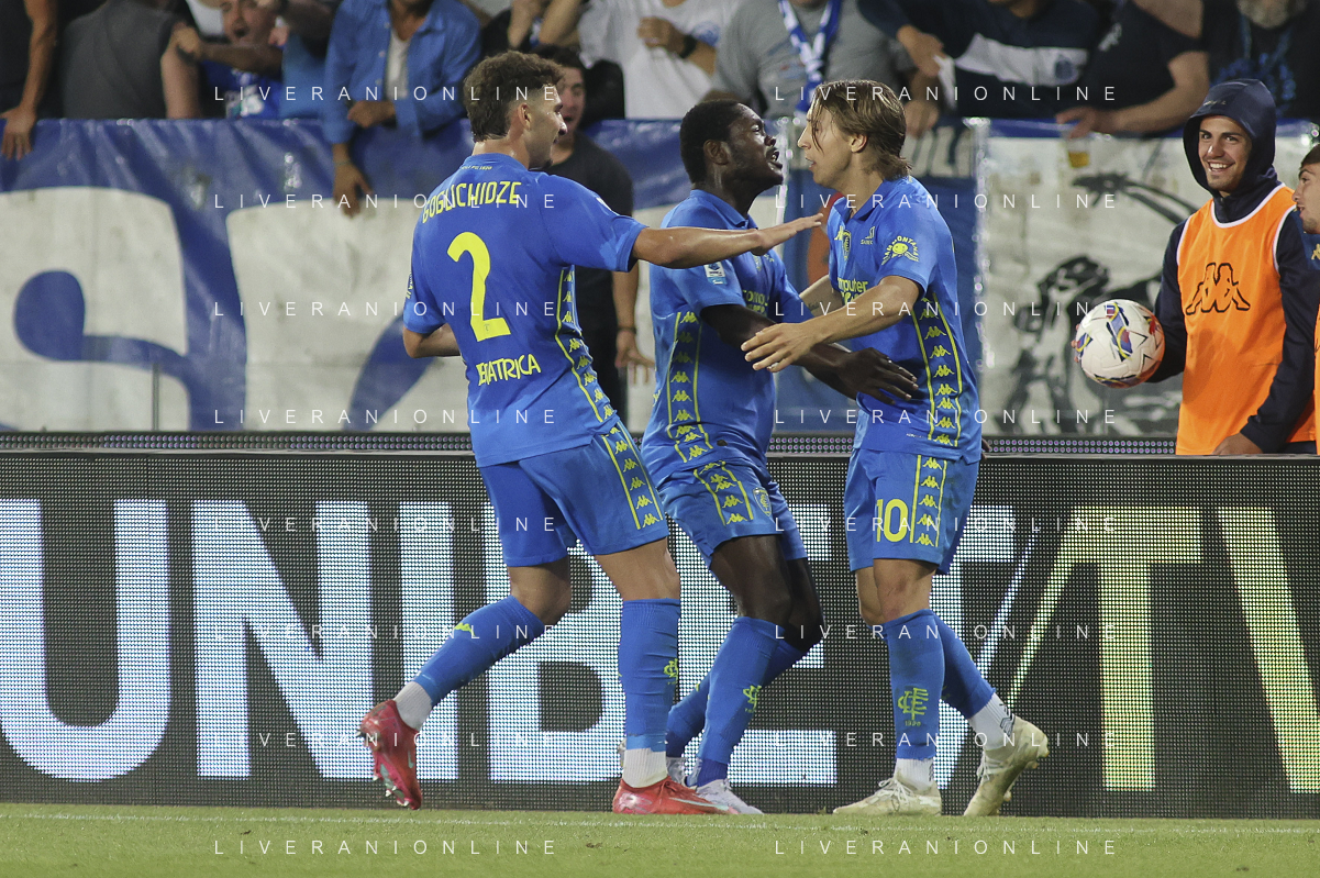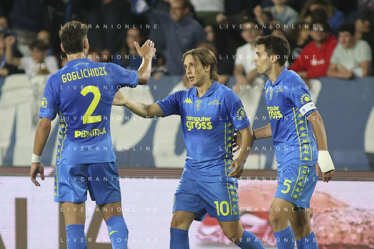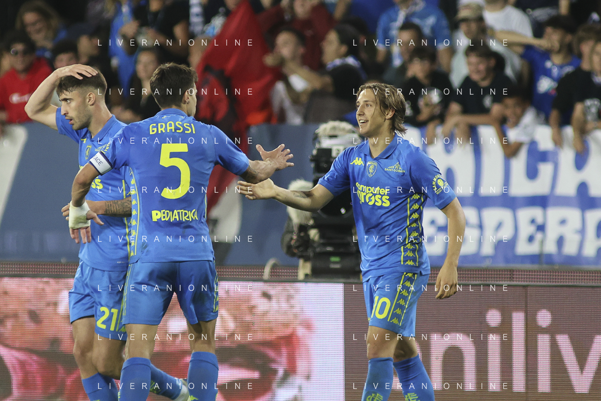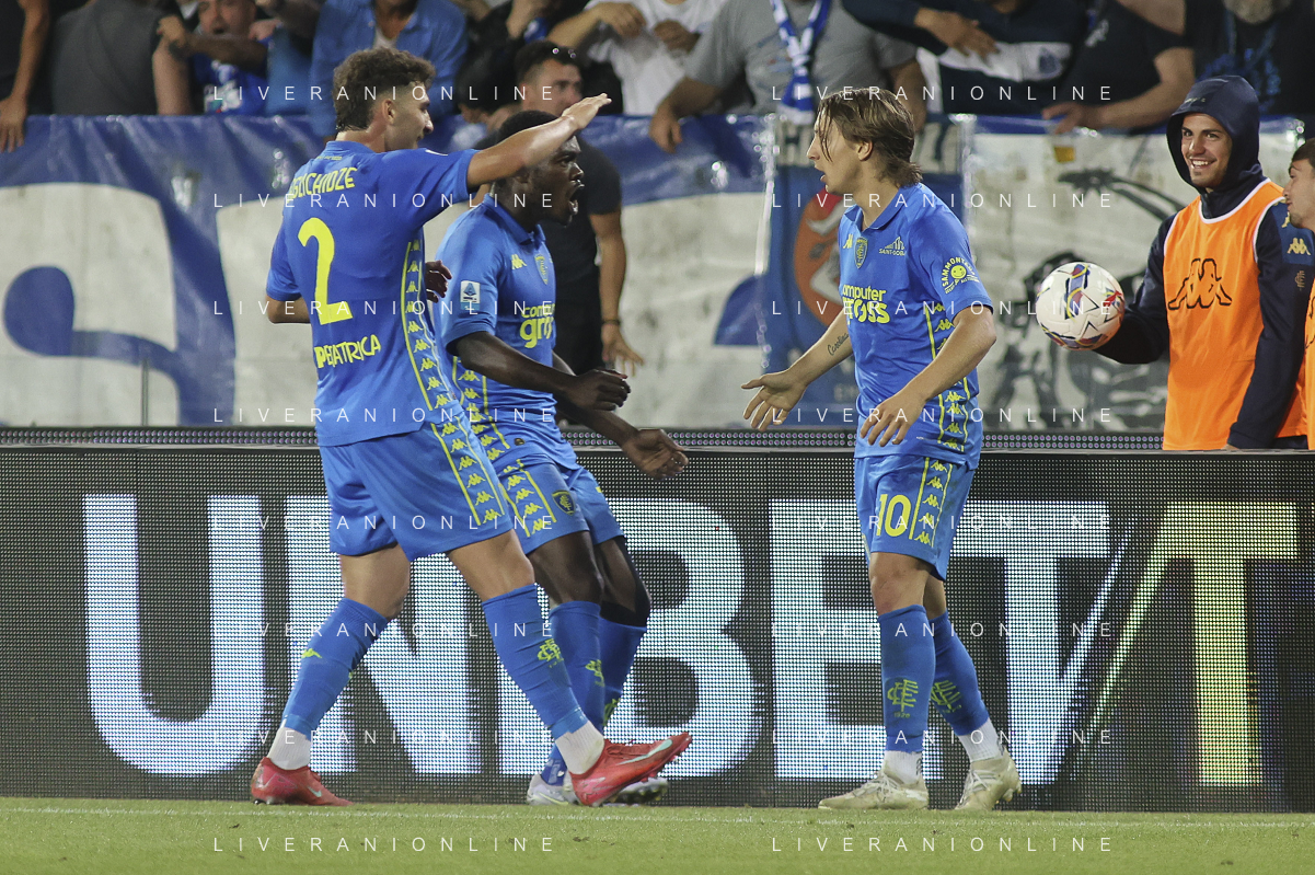 Jacopo Fazzini of Empoli FC celebrates after scoring goal during Empoli FC vs Hellas Verona FC, 38° Serie A Enilive 2024-25 game at Carlo Castellani stadium in Empoli (FI), Italy, on May 25, 2025. (Photo by Davide Casentini)- AGENZIA ALDO LIVERANI SAS