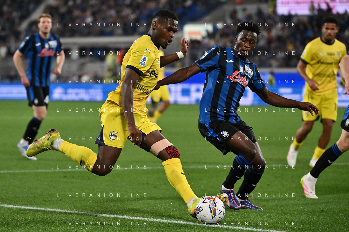 TVRG Atalanta vs Parma nella foto Ange-Yoan Bonny (Parma) e sulla DX Ibrahim Sulemana (Atalanta) Bergamo 25-05-2025 Gewiss Stadium Campionato Serie A Enilive - 38a giornata foto Roberto Garavaglia/Agenzia Aldo Liverani sas