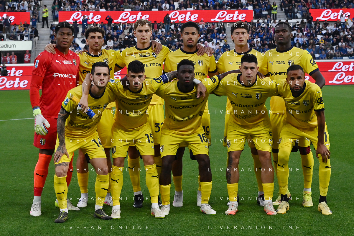TVRG Atalanta vs Parma nella foto formazione Parma, in piedi da SX Zion Suzuki, Botond Balogh, Mateo Pellegrino, Simon Sohm, Alessandro Circati e Ange-Yoan Bonny; in basso da SX Emanuele Valeri, Enrico Delprato, Mandela Keita, Lautaro Rodrigo Valenti e Hernani Azevedo Junior Bergamo 25-05-2025 Gewiss Stadium Campionato Serie A Enilive - 38a giornata foto Roberto Garavaglia/Agenzia Aldo Liverani sas