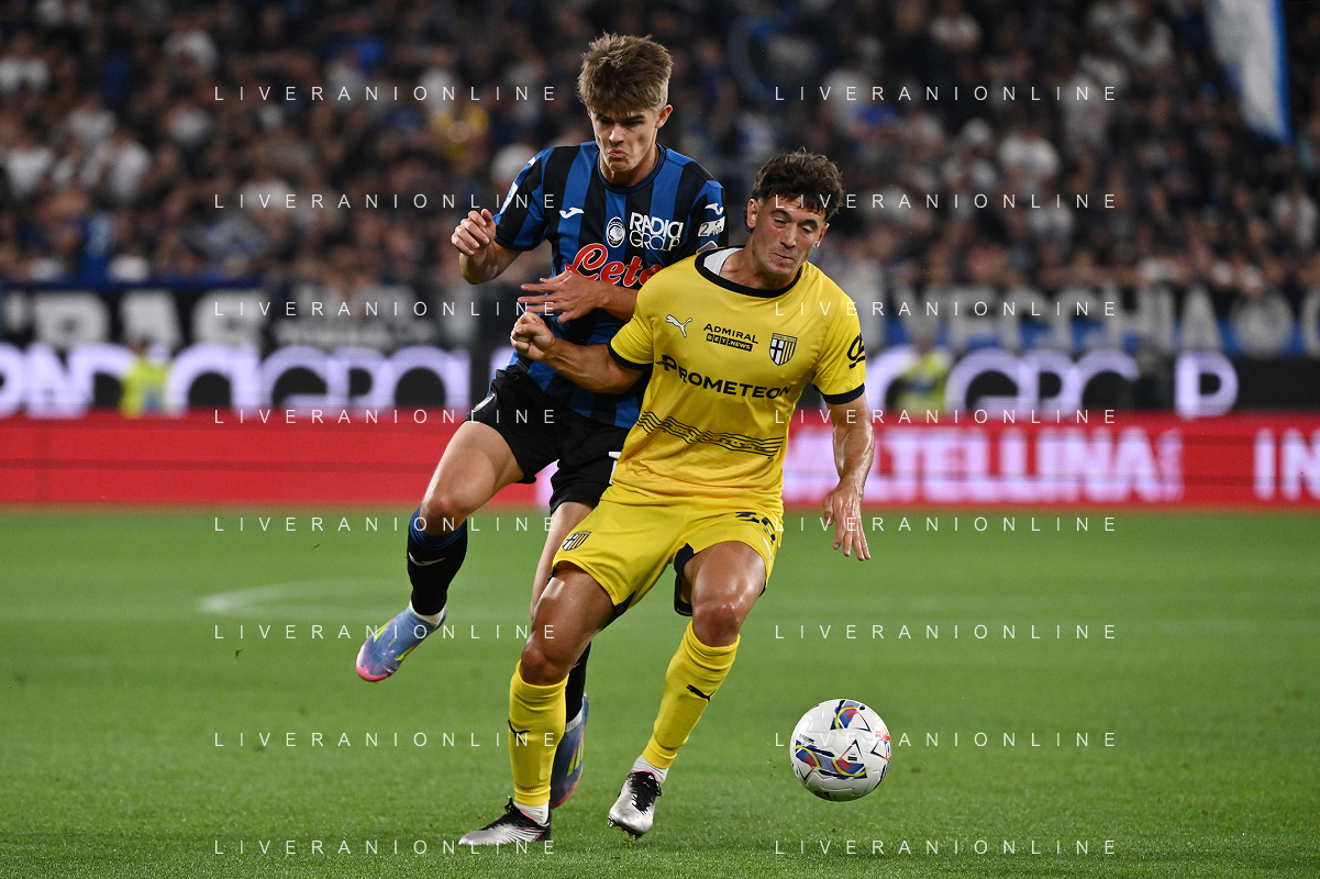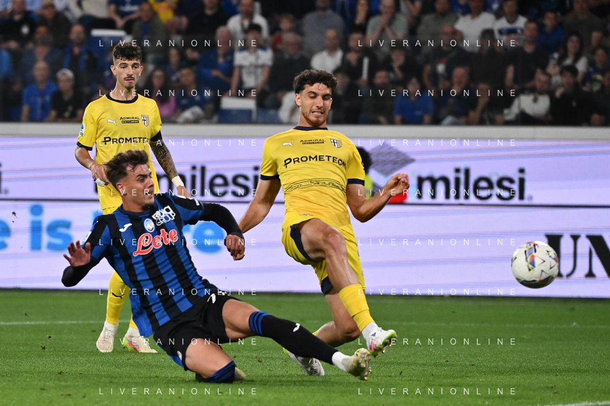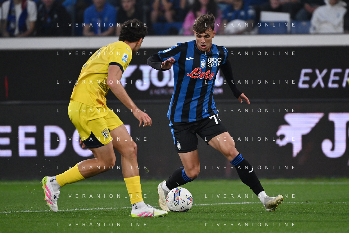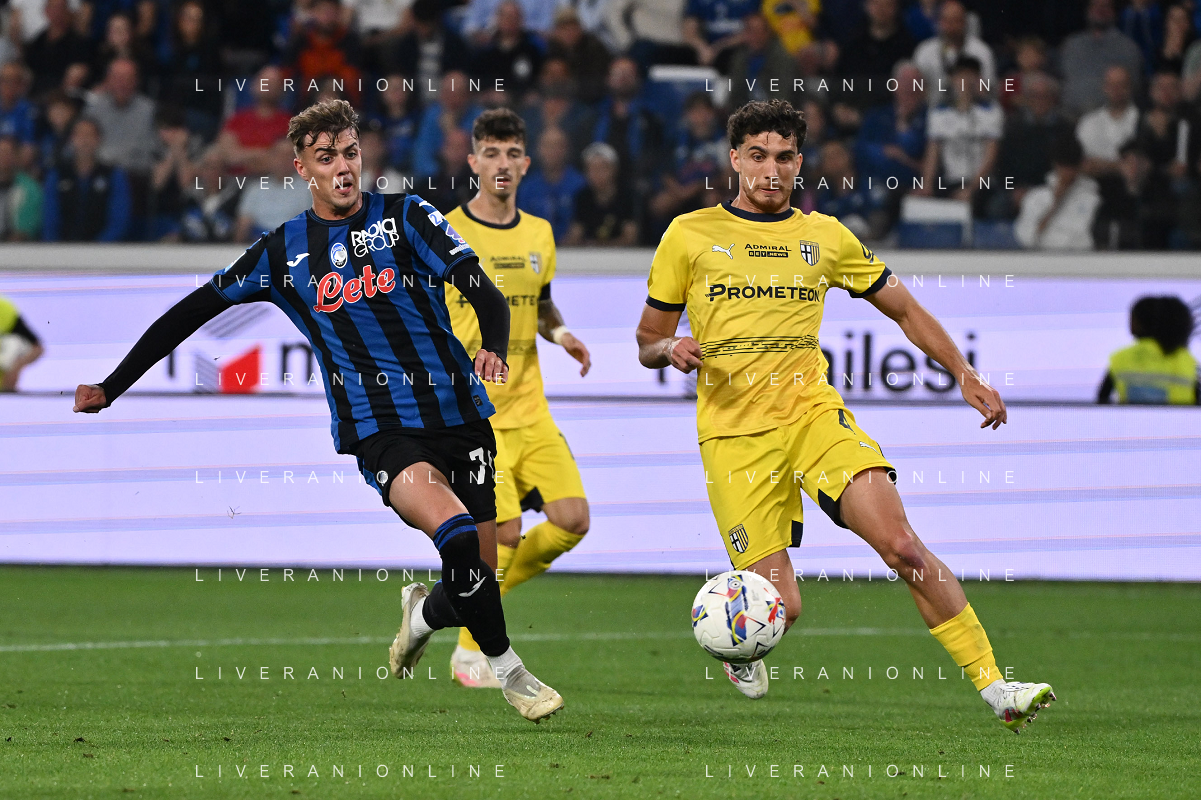 TVRG Atalanta vs Parma nella foto Charles de Ketelaere (Atalanta) e Alessandro Circati (Parma) Bergamo 25-05-2025 Gewiss Stadium Campionato Serie A Enilive - 38a giornata foto Roberto Garavaglia/Agenzia Aldo Liverani sas