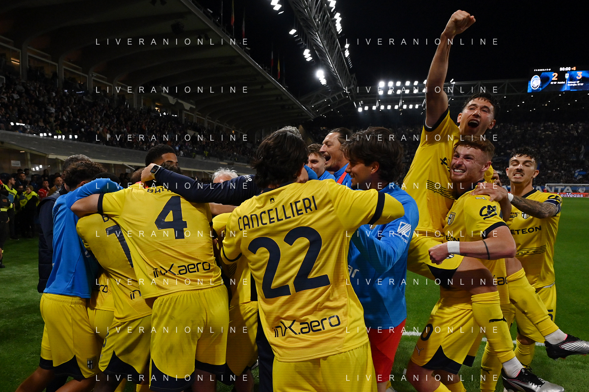 TVRG Atalanta vs Parma nella foto giocatori Parma esultanza dopo il gol del 2 a 2 Bergamo 25-05-2025 Gewiss Stadium Campionato Serie A Enilive - 38a giornata foto Roberto Garavaglia/Agenzia Aldo Liverani sas