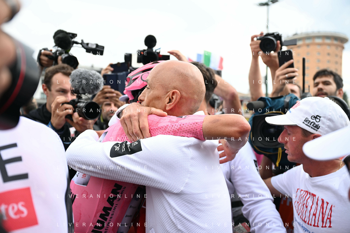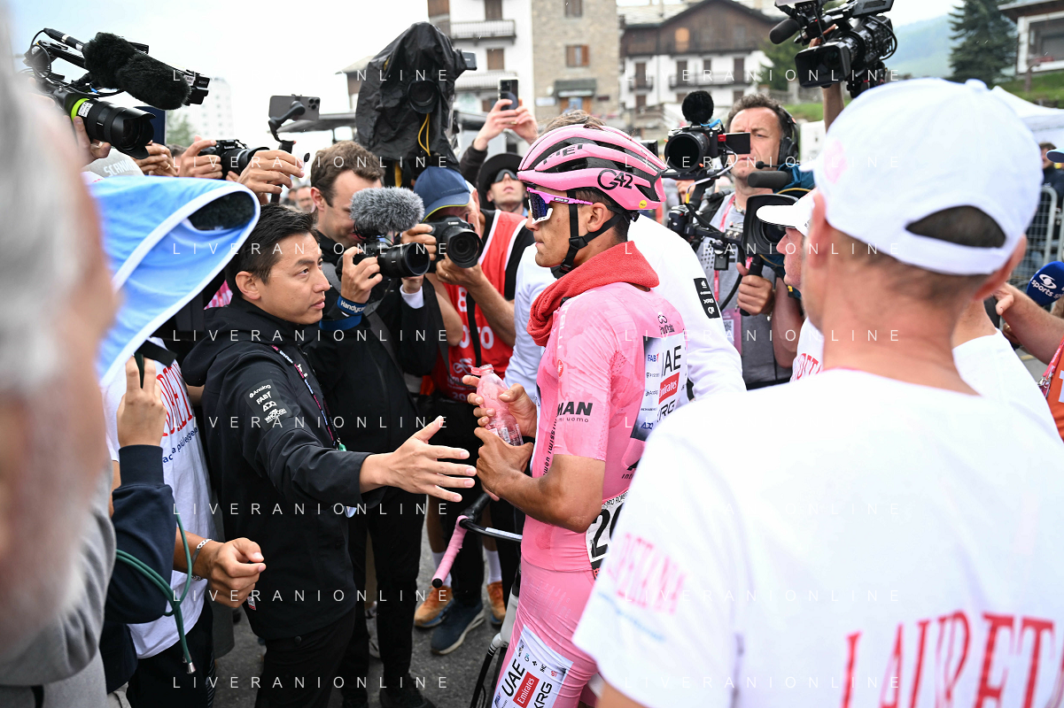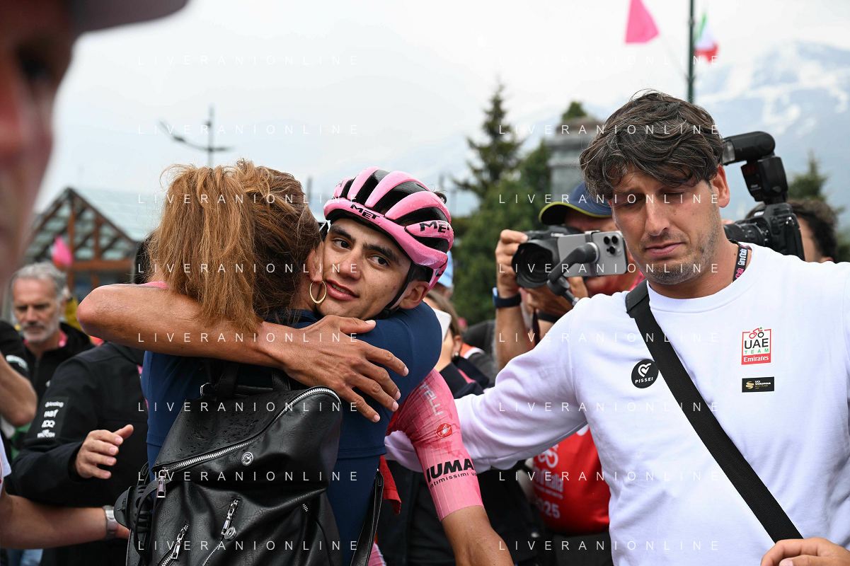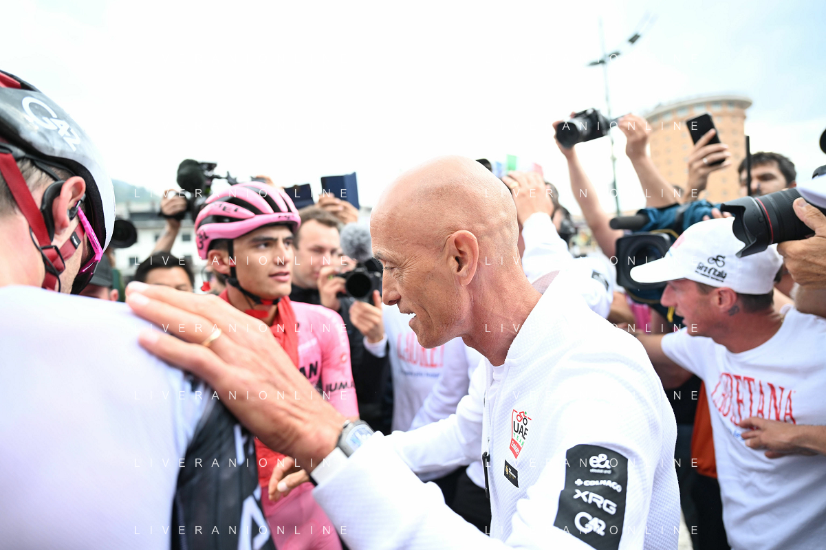 31-05-2025 Giro D'italia; Tappa 20 Verres - Sestriere; 2025, Uae Team Emirates - Xrg; Del Toro Romero, Isaac; Gianetti, Mauro; Sestriere; ©SIROTTI - AGENZIA ALDO LIVERANI SAS