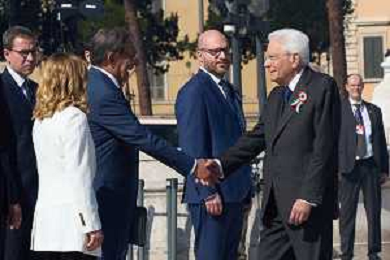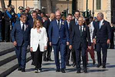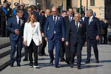 Roma - 02 Giugno 2025 Celebrazioni del 2 Giugno per la Festa della Repubblica. Nella Foto: Ignazio La Russa, Giorgia Meloni, Lorenzo Fontana Andrea Bracaglia - AGENZIA ALDO LIVERANI SAS