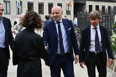 TVRG Funerale Pellegrini nella foto da SX Riccardo Ferri, Alessandro Bianchi e Karl Heinz Rumenigge Milano 04-06-2025 Funerale di Ernesto Pellegrini presso la Basilica di Sant'Ambrogio foto Roberto Garavaglia/Agenzia Aldo Liverani sas