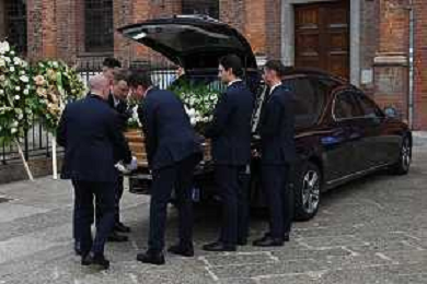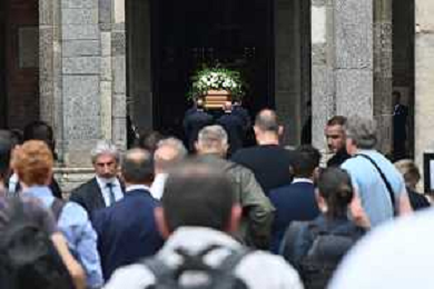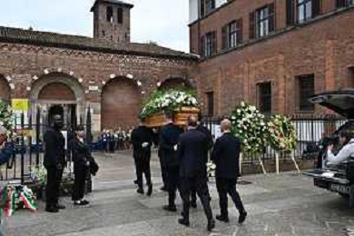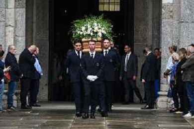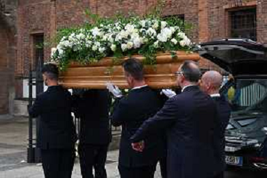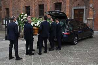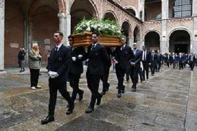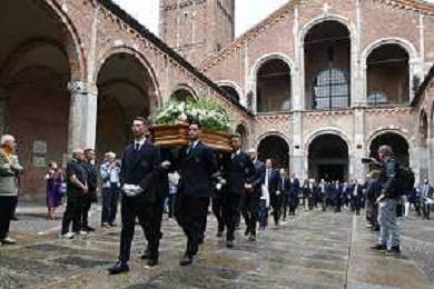 TVRG Funerale Pellegrini nella foto uscita del feretro Milano 04-06-2025 Funerale di Ernesto Pellegrini presso la Basilica di Sant'Ambrogio foto Roberto Garavaglia/Agenzia Aldo Liverani sas