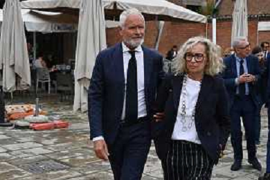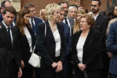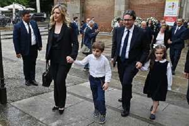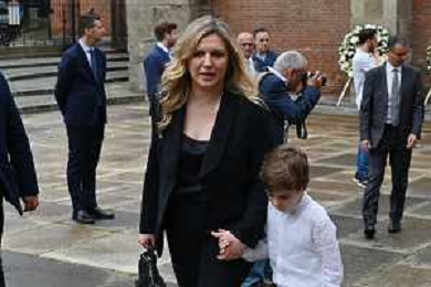 TVRG Funerale Pellegrini nella foto Valentina Pellegrini con il marito e i figli Milano 04-06-2025 Funerale di Ernesto Pellegrini presso la Basilica di Sant'Ambrogio foto Roberto Garavaglia/Agenzia Aldo Liverani sas