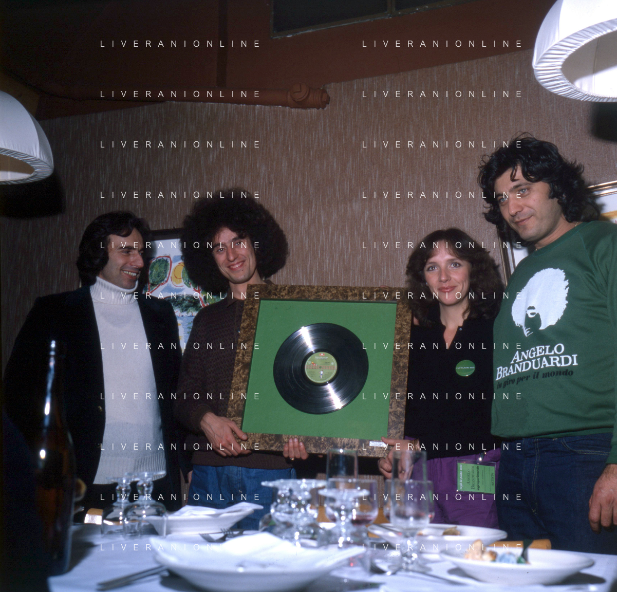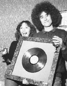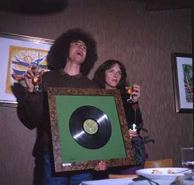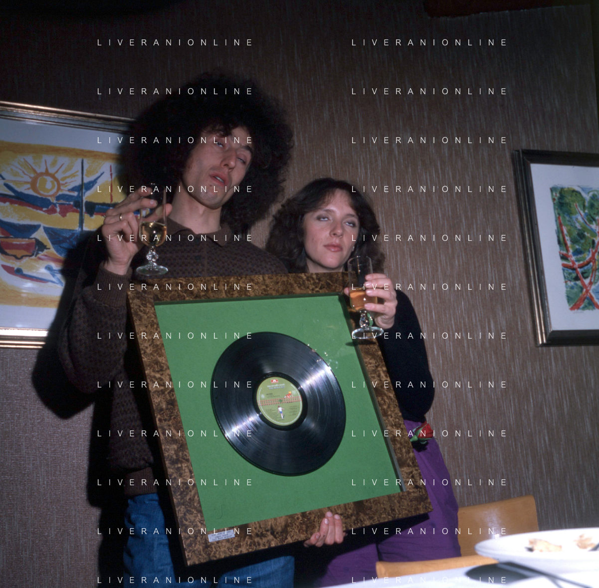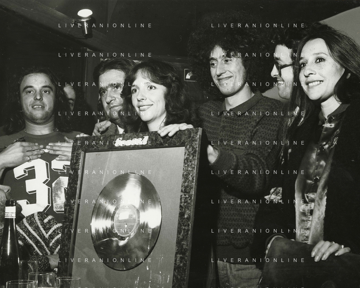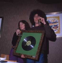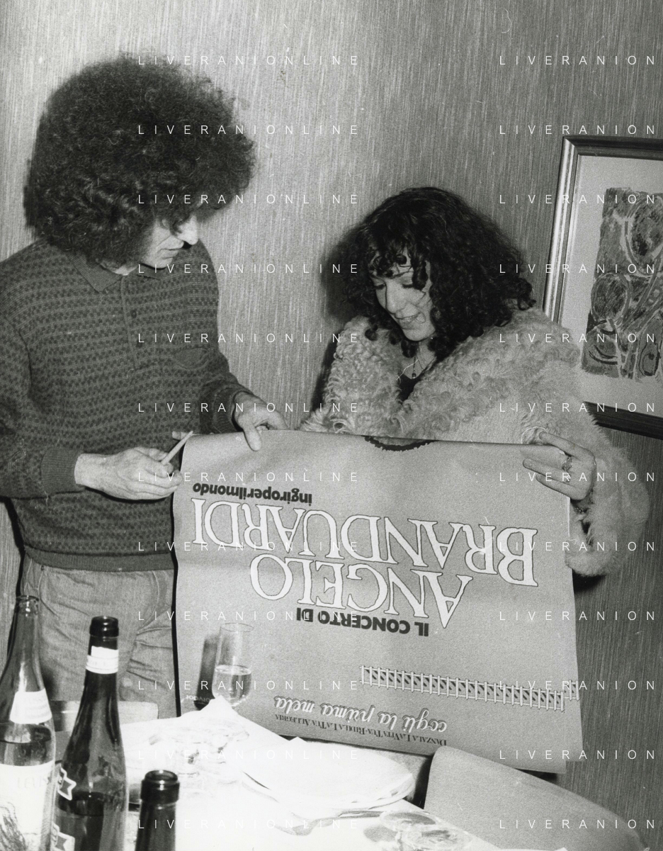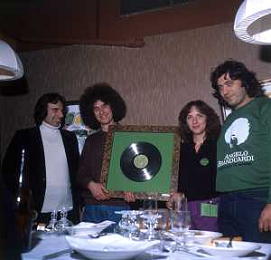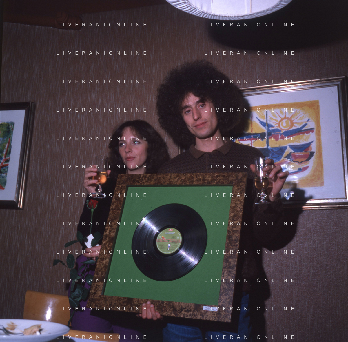 COL-RETROSPETTIVA ANGELO BRANDUARDI CANTANTE NELLA FOTO ANGELO BRANDUARDI CON LA MOGLIE COL DISCO DI PLATINO CONSEGNATO A TORINO NELL'ANNO 1979 AG ALDO LIVERANI SAS