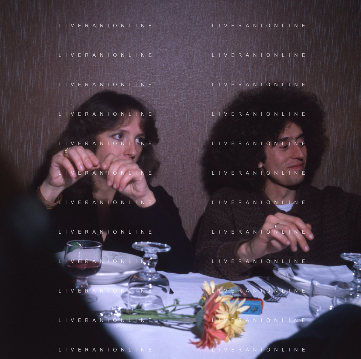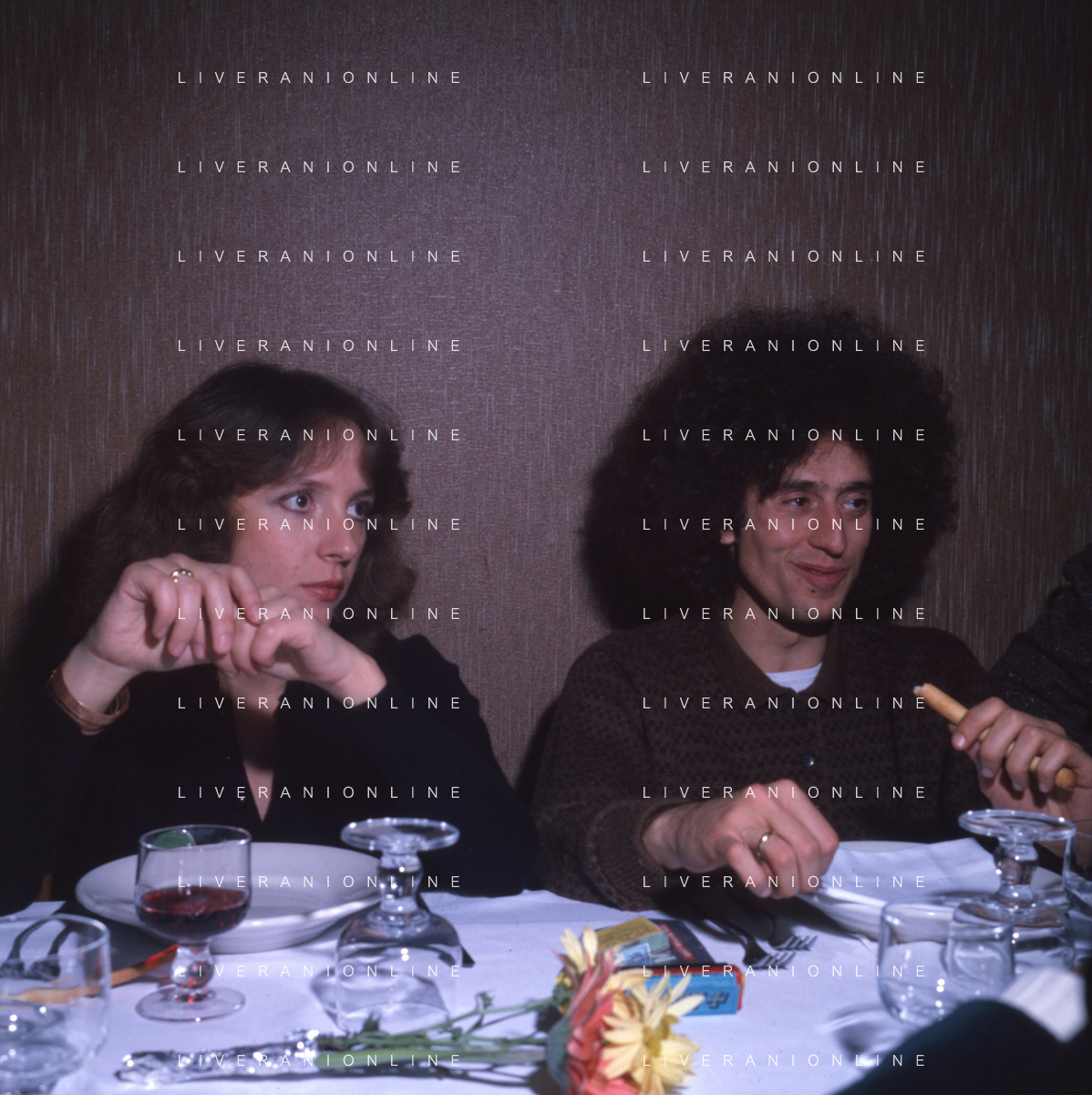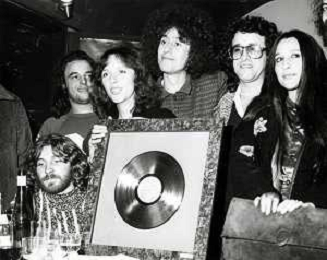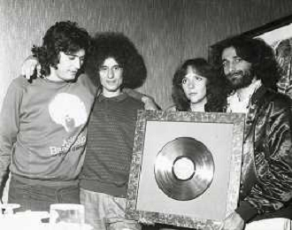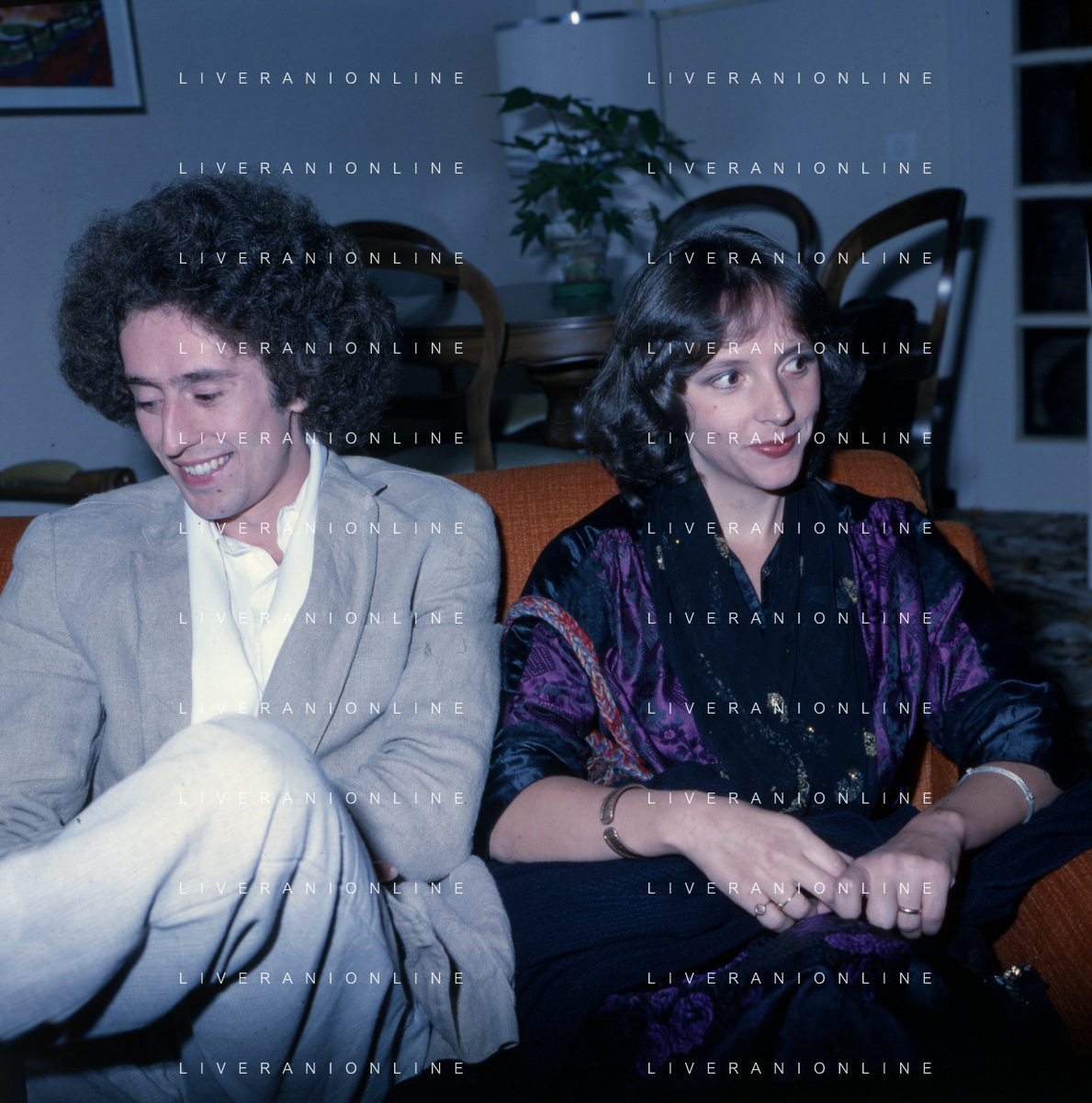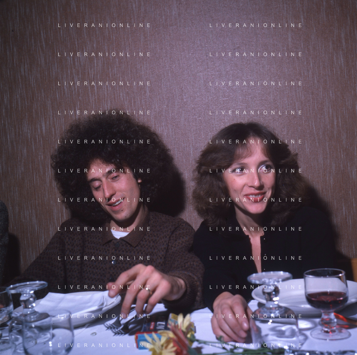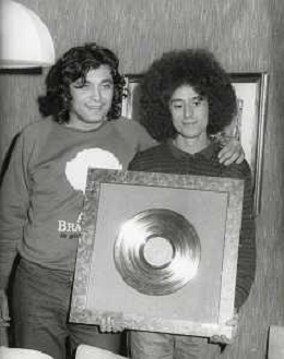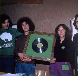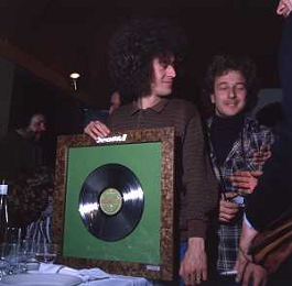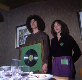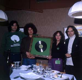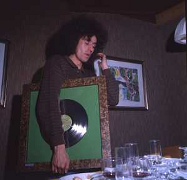 COL-RETROSPETTIVA ANGELO BRANDUARDI CANTANTE NELLA FOTO ANGELO BRANDUARDI CON LA MOGLIE COL DISCO DI PLATINO CONSEGNATO A TORINO NELL'ANNO 1979 AG ALDO LIVERANI SAS