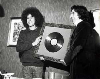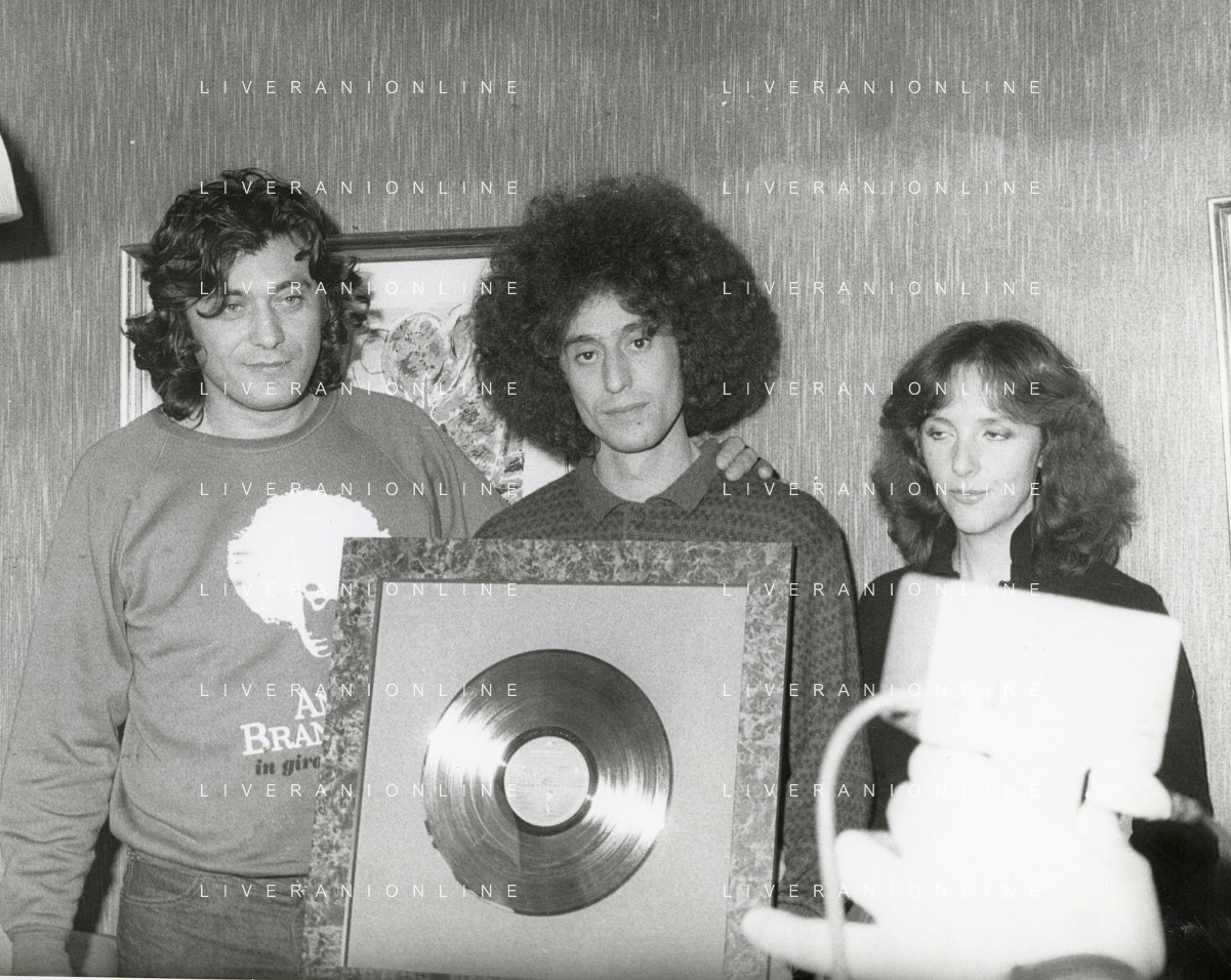 ST-RETROSPETTIVA ANGELO BRANDUARDI CANTANTE NELLA FOTO ANGELO BRANDUARDI CON LA MOGLIE COL DISCO DI PLATINO CONSEGNATO A TORINO NELL'ANNO 1979 ARCHIVIO GIOVANNI LIVERANI-AG ALDO LIVERANI SAS