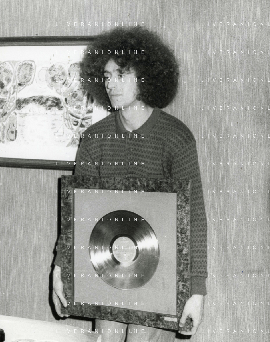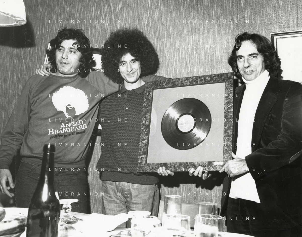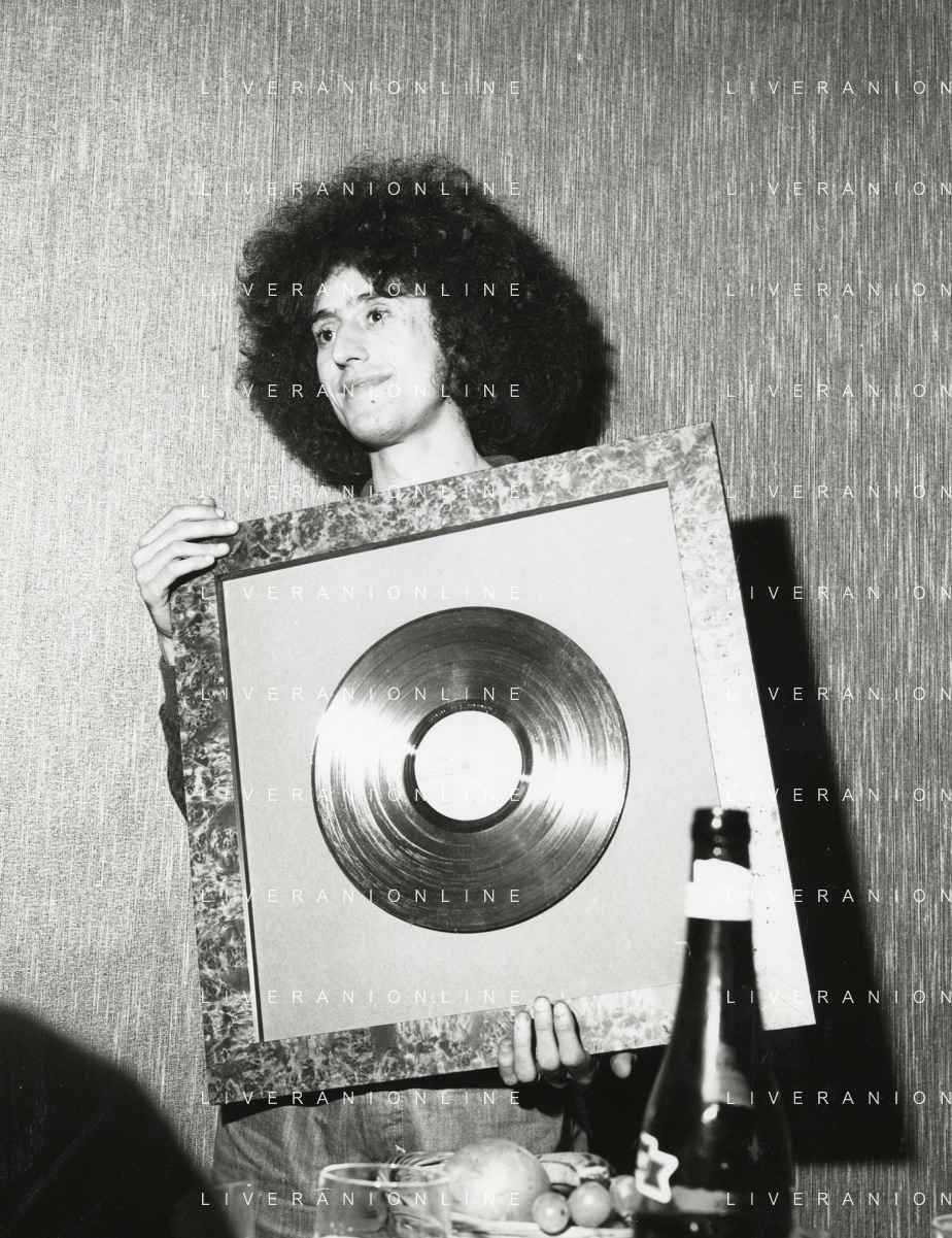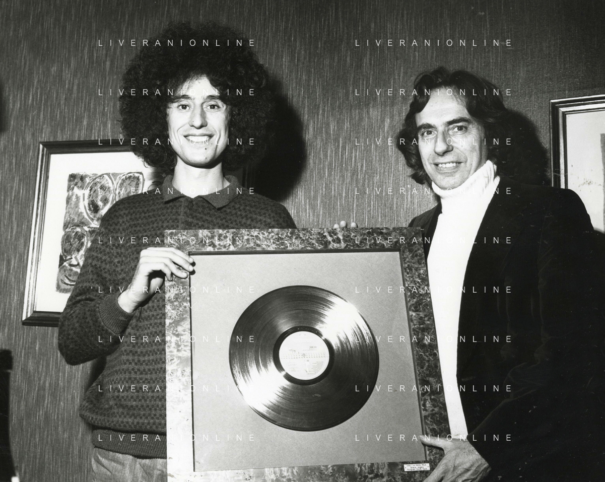 ST-RETROSPETTIVA ANGELO BRANDUARDI CANTANTE NELLA FOTO ANGELO BRANDUARDI COL DISCO DI PLATINO CONSEGNATO A TORINO NELL'ANNO 1979 ARCHIVIO GIOVANNI LIVERANI-AG ALDO LIVERANI SAS