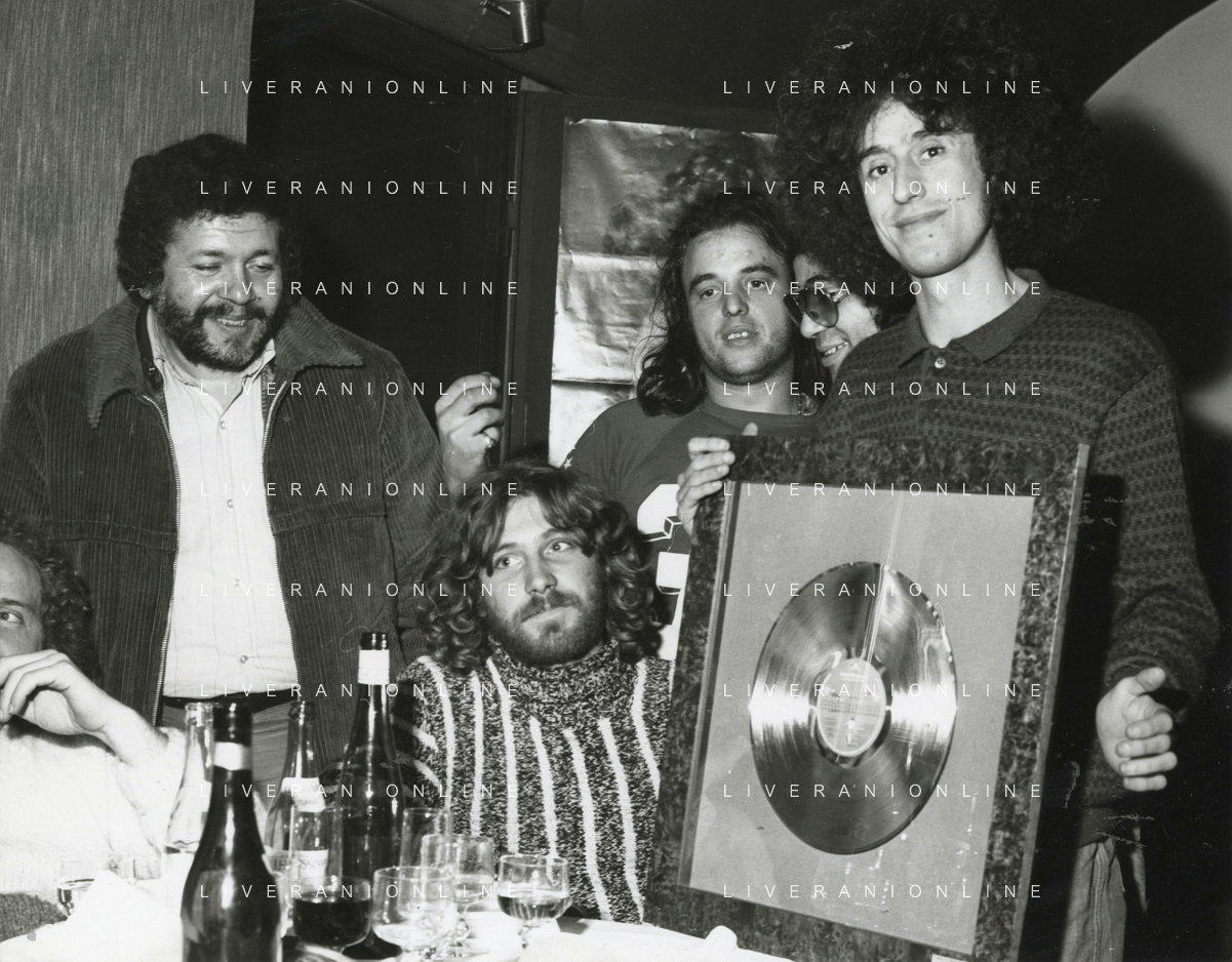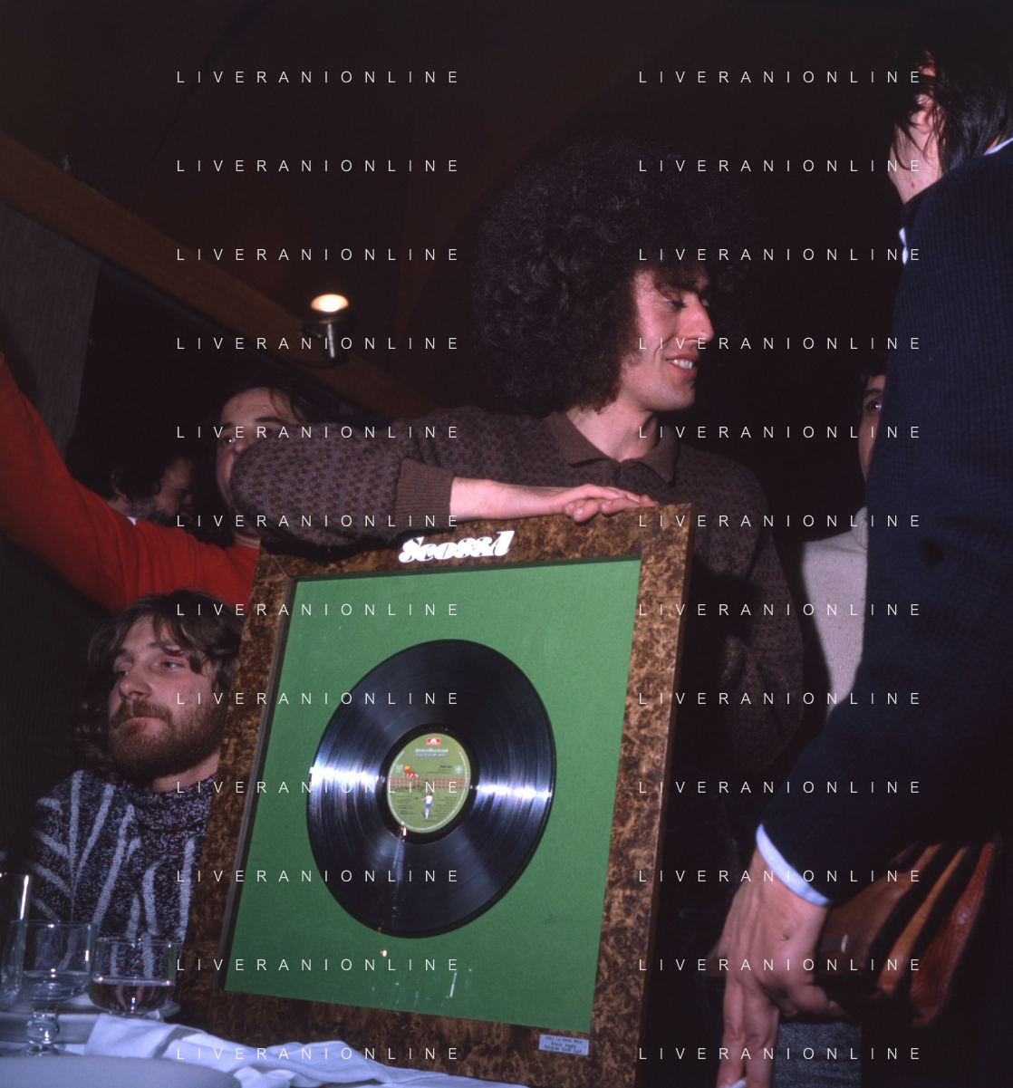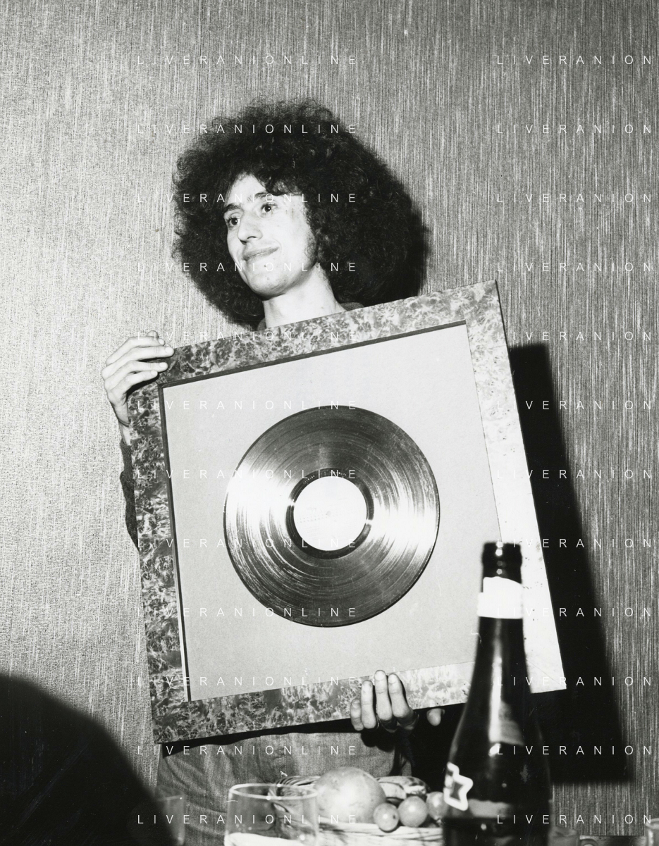 ST-RETROSPETTIVA ANGELO BRANDUARDI CANTANTE NELLA FOTO ANGELO BRANDUARDI COL DISCO DI PLATINO CONSEGNATO A TORINO NELL'ANNO 1979 ARCHIVIO GIOVANNI LIVERANI-AG ALDO LIVERANI SAS
