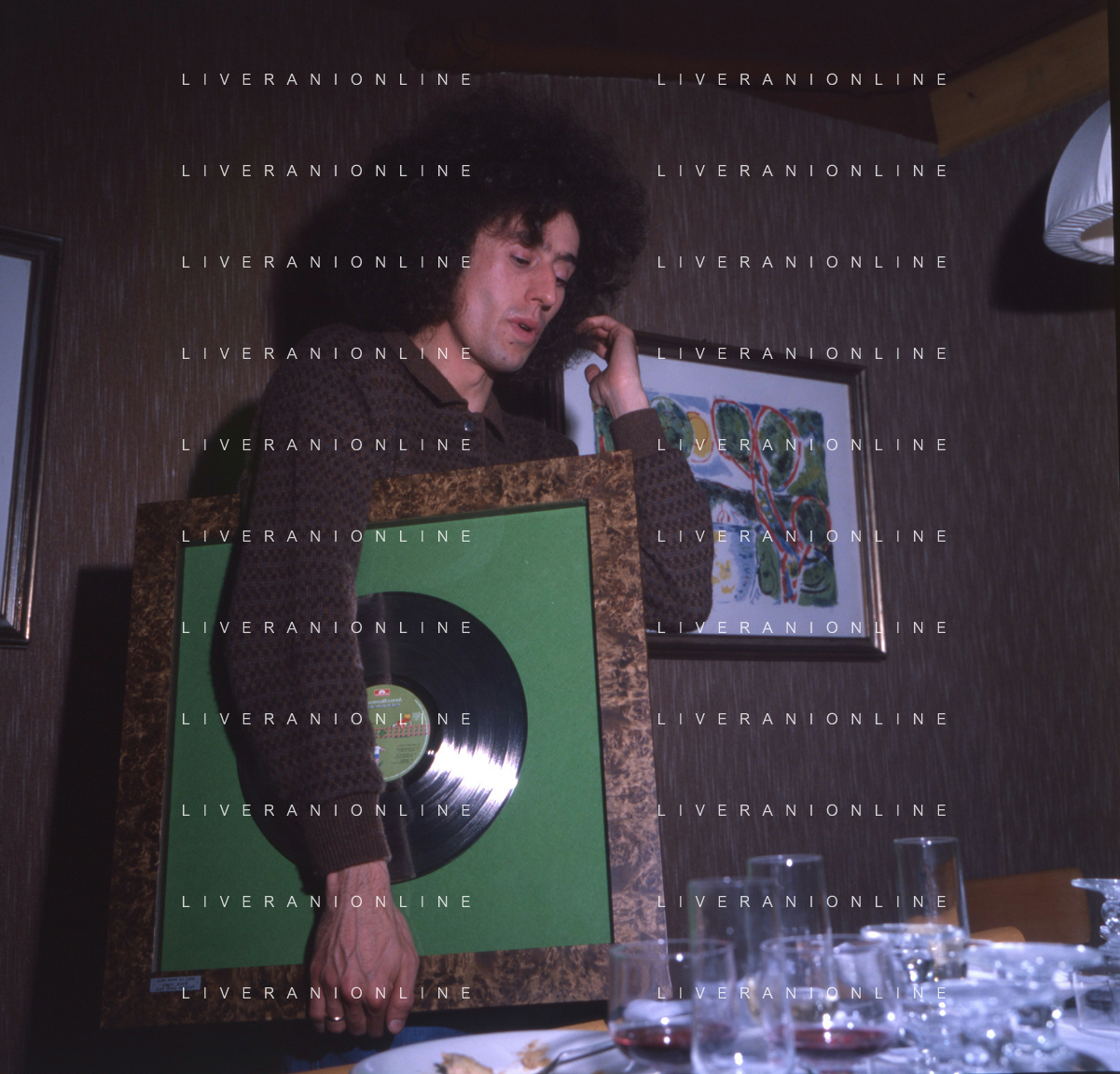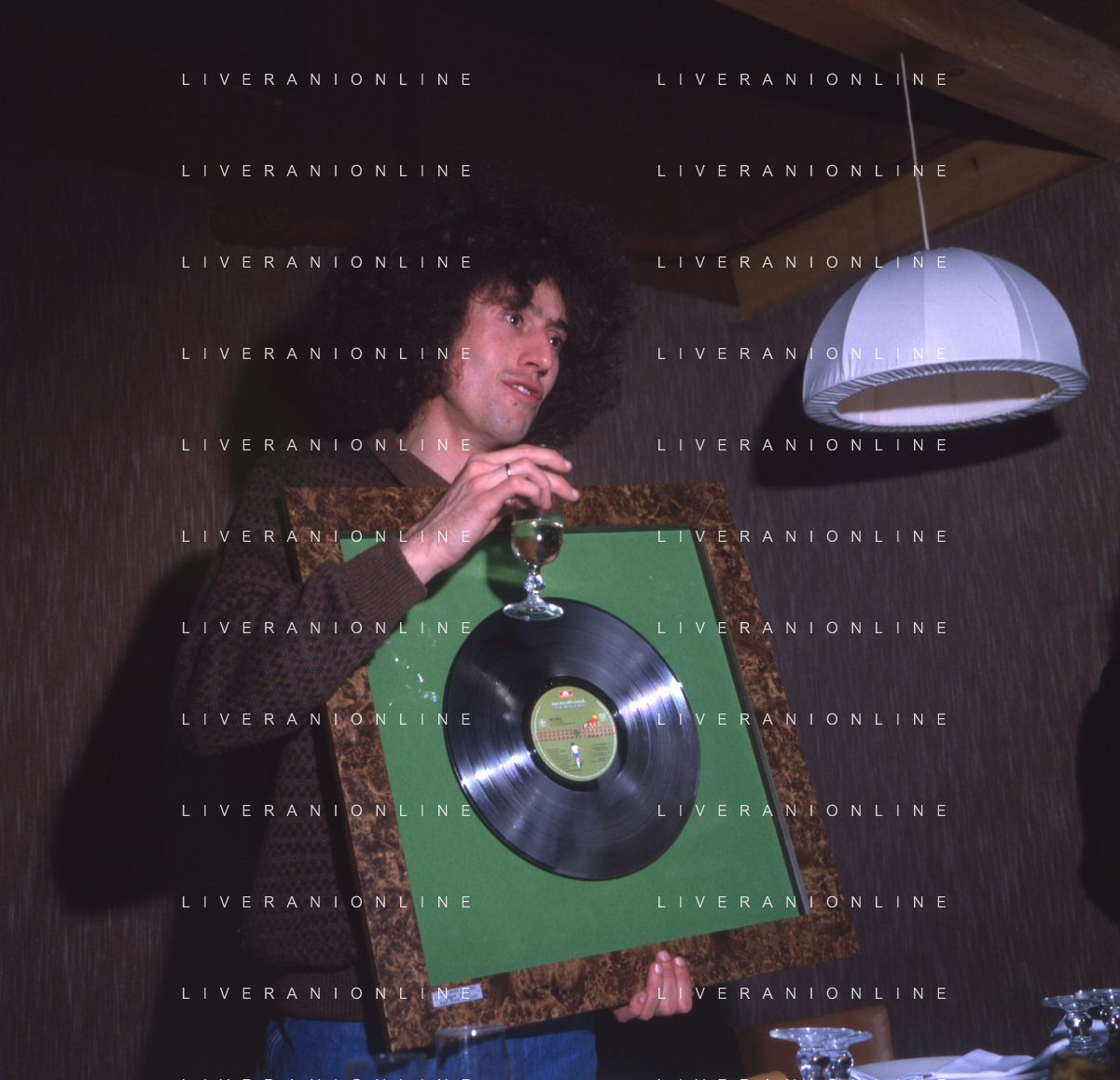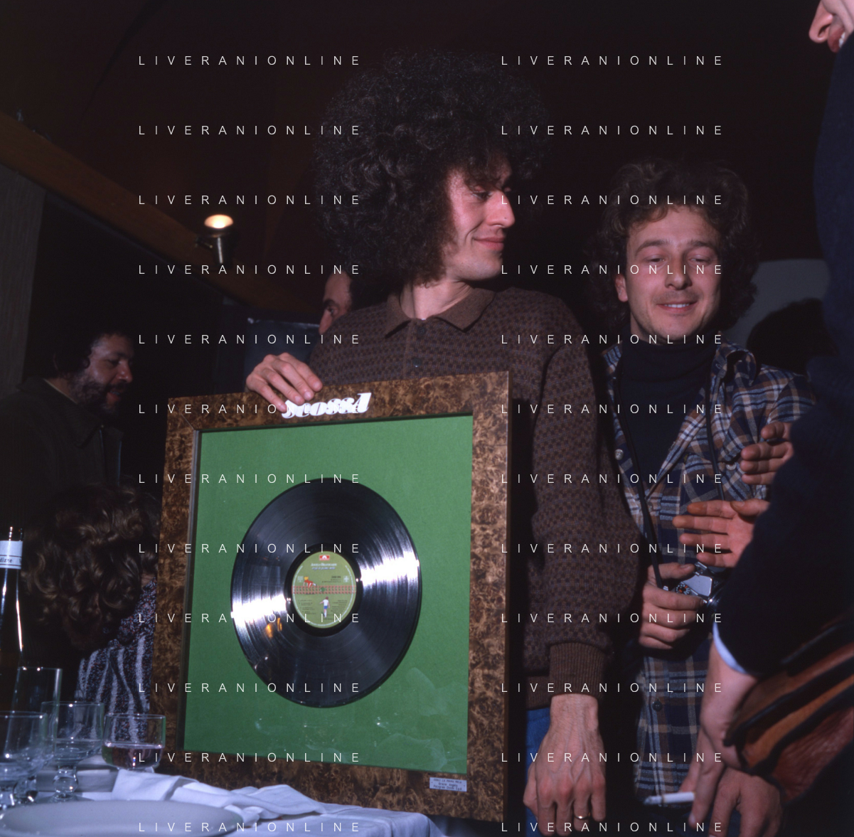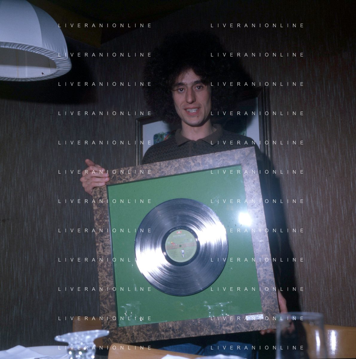 ST-RETROSPETTIVA ANGELO BRANDUARDI CANTANTE NELLA FOTO ANGELO BRANDUARDI COL DISCO DI PLATINO CONSEGNATO A TORINO NELL'ANNO 1979 ARCHIVIO GIOVANNI LIVERANI-AG ALDO LIVERANI SAS