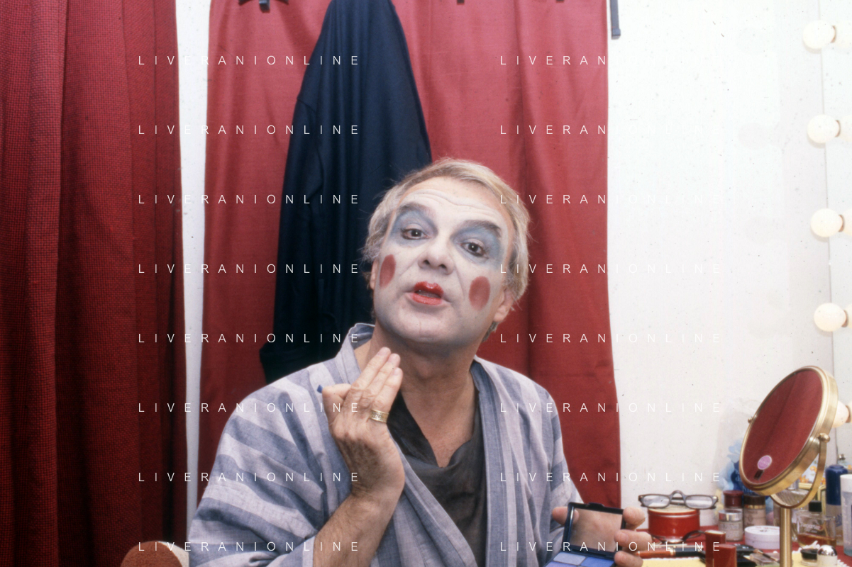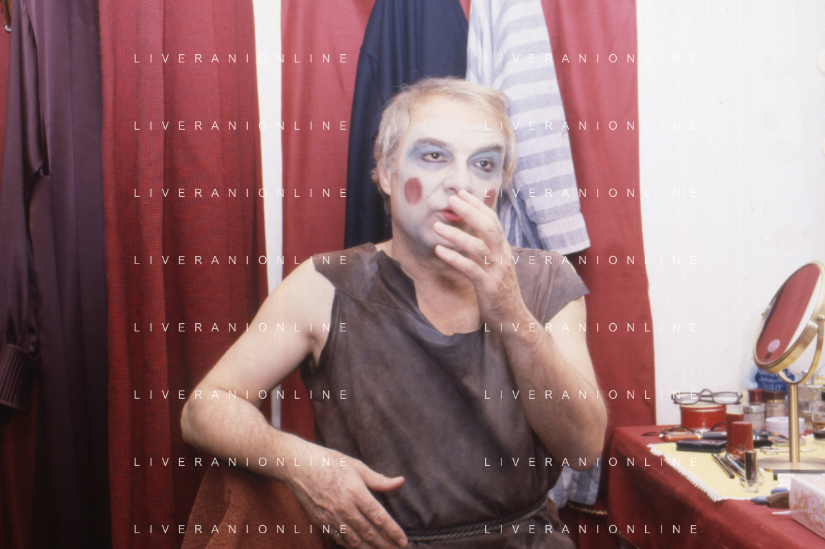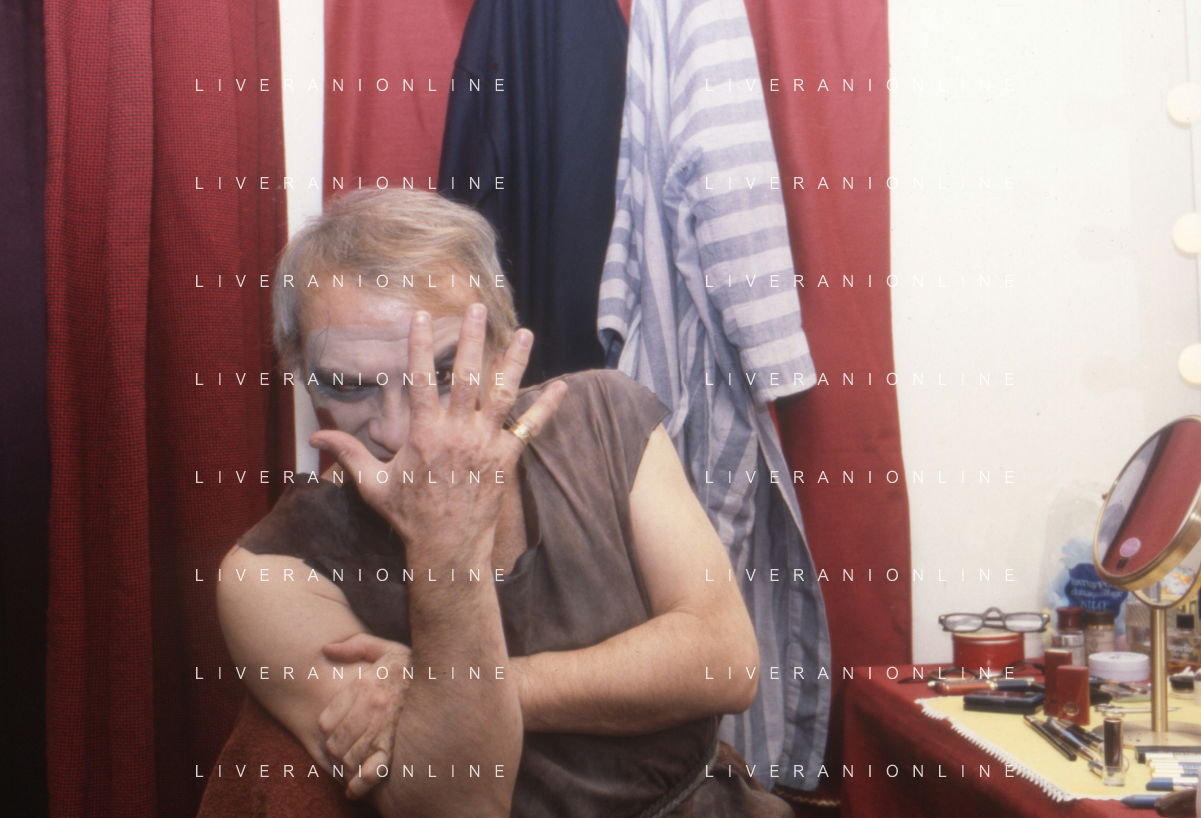 DIAP-RETROSPETTIVA GIORGIO ALBERTAZZI ATTORE NELLA FOTO GIORGIO ALBERTAZZI IN TEATRO NEL SUO CAMERINO NELL'ANNO 1979 FOTO ENRICO LIVERANI-AG ALDO LIVERANI SAS