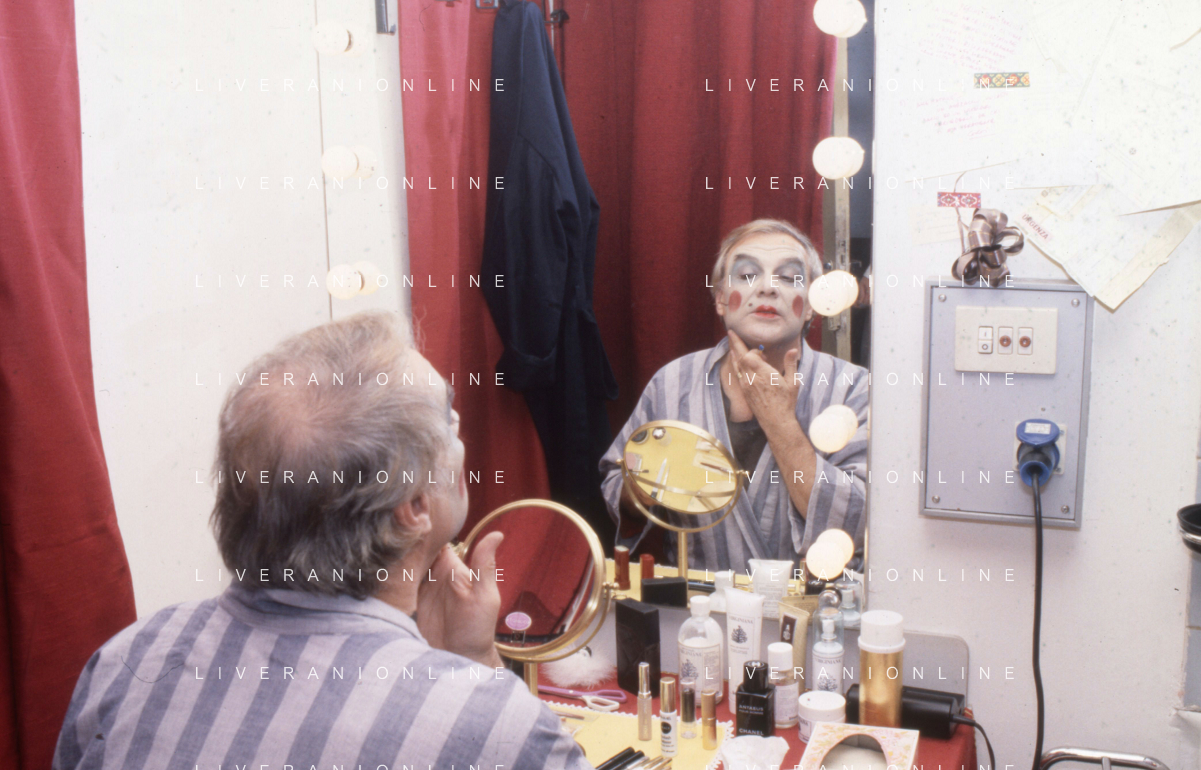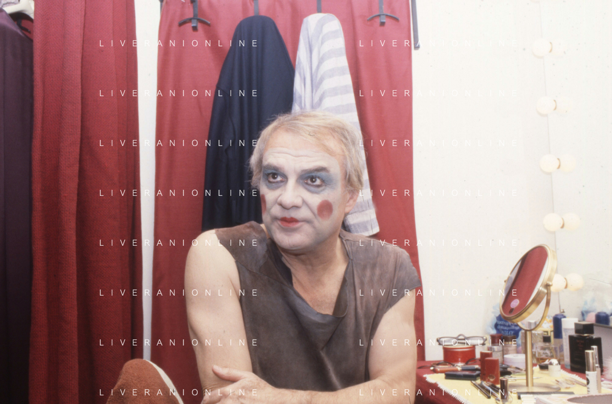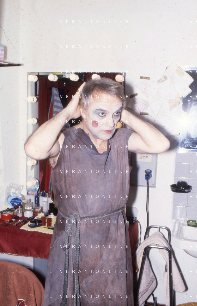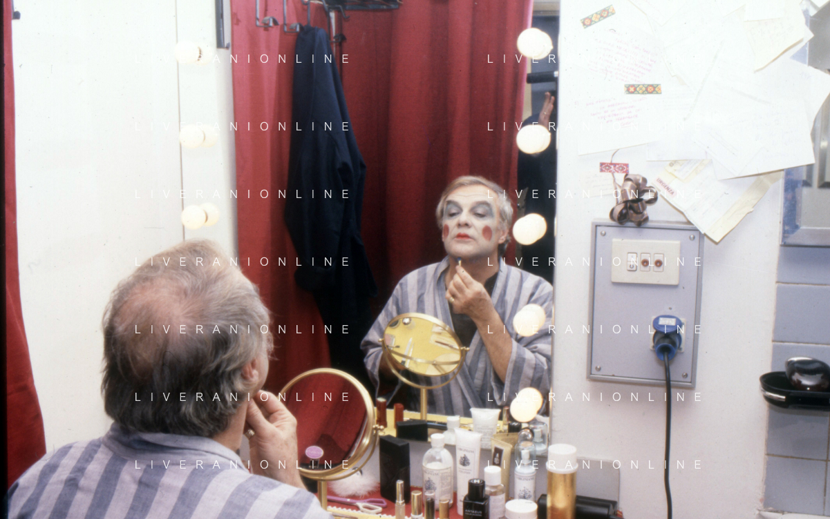 DIAP-RETROSPETTIVA GIORGIO ALBERTAZZI ATTORE NELLA FOTO GIORGIO ALBERTAZZI IN TEATRO NEL SUO CAMERINO NELL'ANNO 1979 FOTO ENRICO LIVERANI-AG ALDO LIVERANI SAS