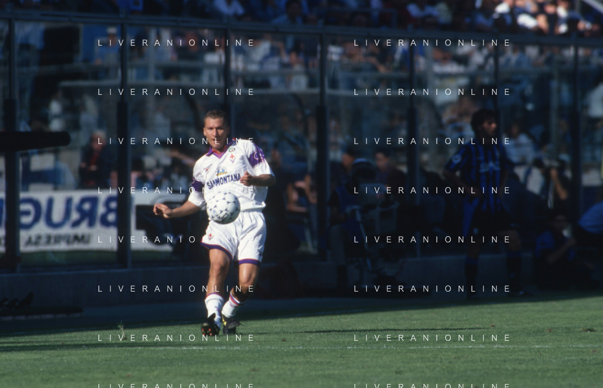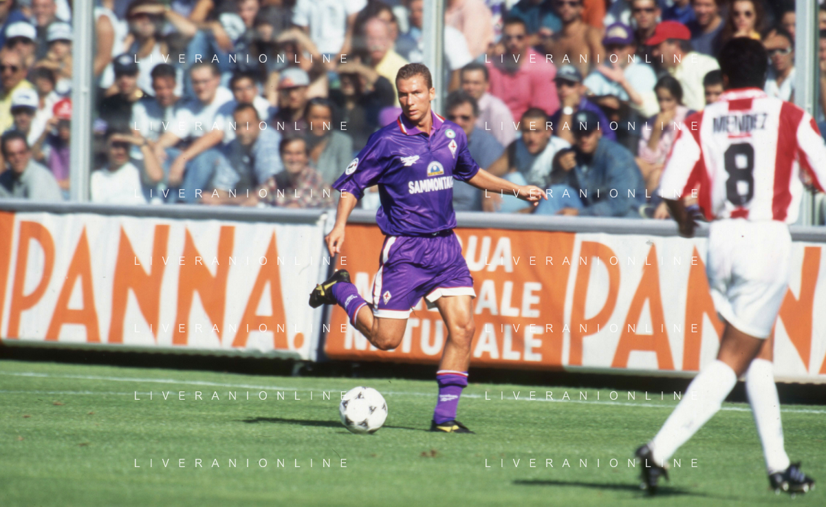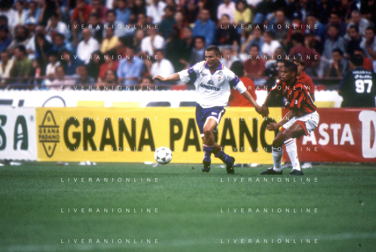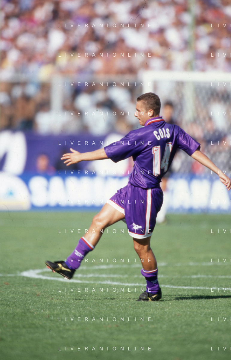 DIAP-RETROSPETTIVA SANDRO COIS CALCIATORE NELLA FOTO SANDRO COIS CON LA MAGLIA DELLA FIORENTINA CALCIO NELL'ANNO 1996 SUPERCOPPA ITALIANA MILAN-FIORENTINA AG ALDO LIVERANI SAS