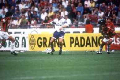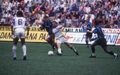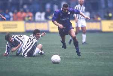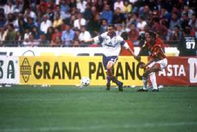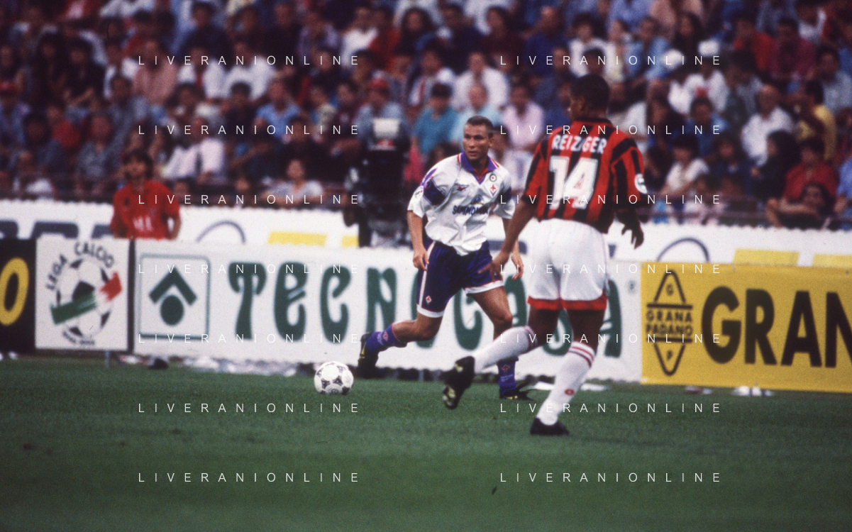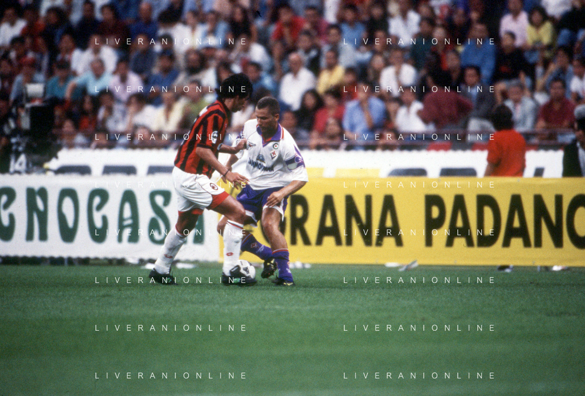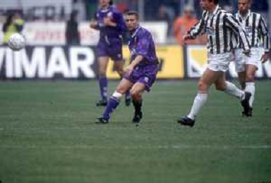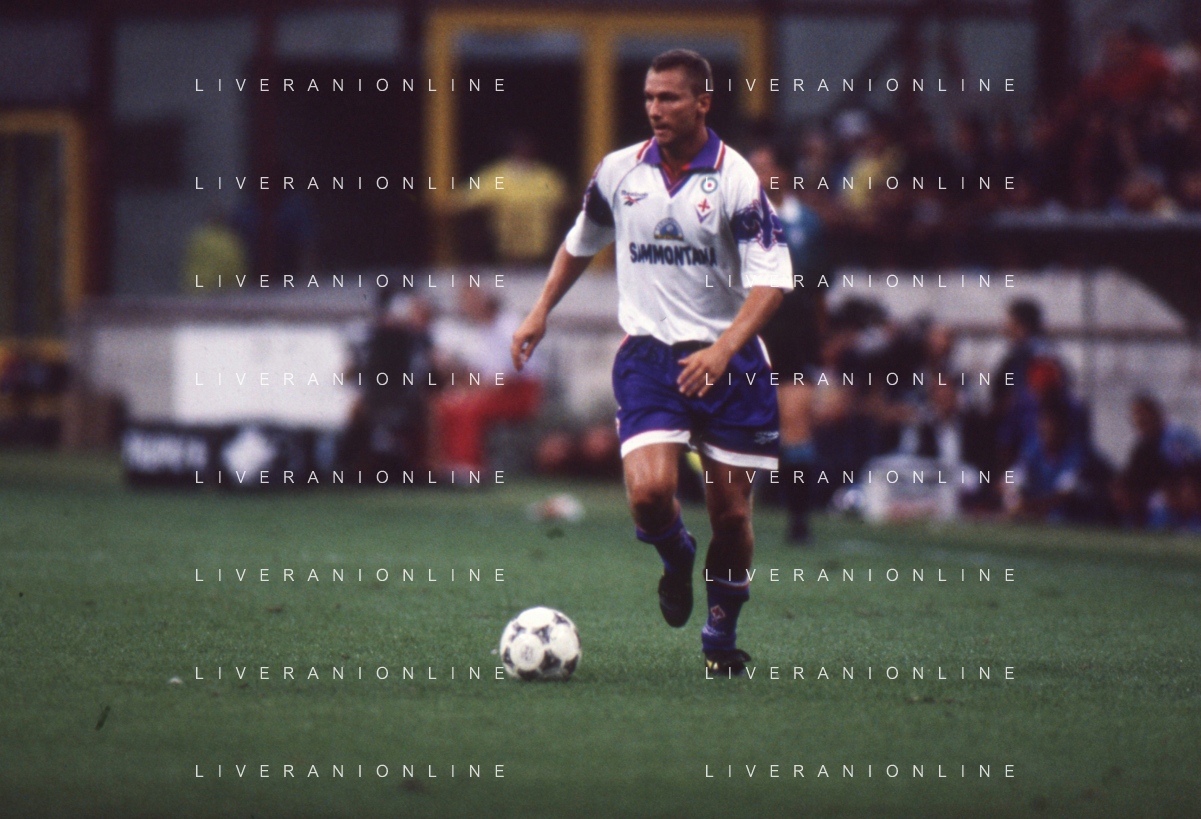 DIAP-RETROSPETTIVA SANDRO COIS CALCIATORE NELLA FOTO SANDRO COIS CON LA MAGLIA DELLA FIORENTINA CALCIO NELL'ANNO 1996 SUPERCOPPA ITALIANA MILAN-FIORENTINA AG ALDO LIVERANI SAS