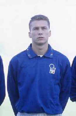 DIAP-RETROSPETTIVA SANDRO COIS CALCIATORE NELLA FOTO SANDRO COIS CON LA MAGLIA DELLA NAZIONALE ITALIANA 1998 AG ALDO LIVERANI SAS