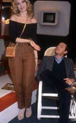 DIAP-RETROSPETTIVA BEATRICE CORI PRESENTATRICE TELEVISIVA NELLA FOTO BEATRICE CORI A ROMA NELL'ANNO 1981 CON PASUALE SQUITIERI FOTO EDGARDO DELLA SCORCIOSA-AG ALDO LIVERANI SAS