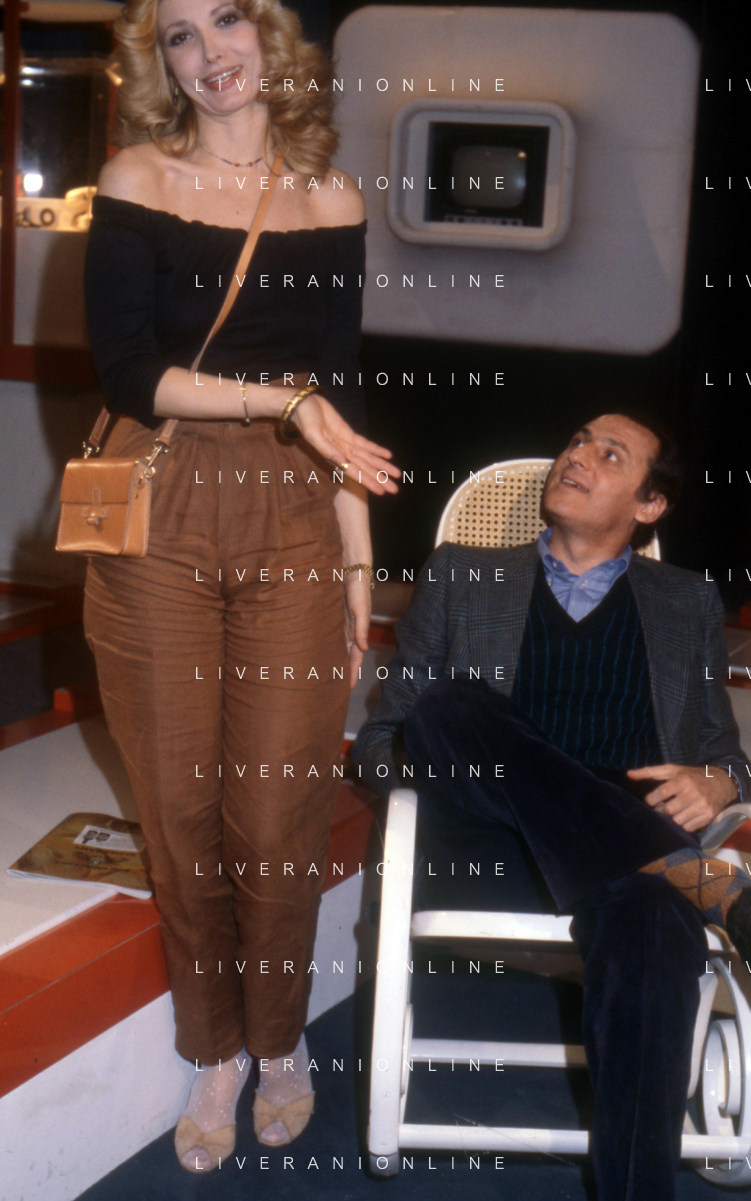 DIAP-RETROSPETTIVA BEATRICE CORI PRESENTATRICE TELEVISIVA NELLA FOTO BEATRICE CORI A ROMA NELL'ANNO 1981 CON RENZO ARBORE FOTO EDGARDO DELLA SCORCIOSA-AG ALDO LIVERANI SAS