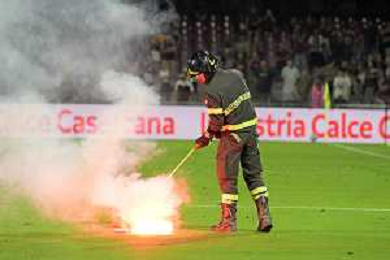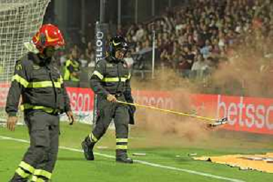22 06 2025 - Salerno. Stadio Arechi. Campionato Serie B. Playout Ritorno. Salernitana-Sampdoria Nella foto pompiere raccoglie fumogeno Foto Giuseppe Cuozzo/Agenzia Liverani - AGENZIA ALDO LIVERANI SAS
