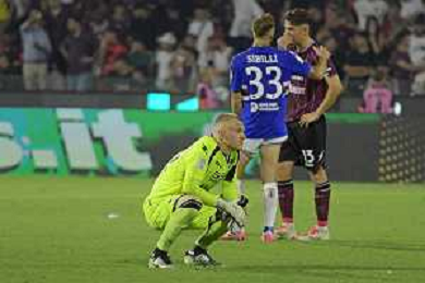 22 06 2025 - Salerno. Stadio Arechi. Campionato Serie B. Playout Ritorno. Salernitana-Sampdoria Nella foto delusione Oliver Christensen Foto Giuseppe Cuozzo/Agenzia Liverani - AGENZIA ALDO LIVERANI SAS