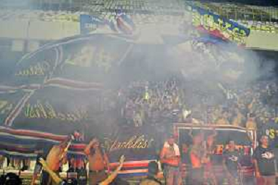 22 06 2025 - Salerno. Stadio Arechi. Campionato Serie B. Playout Ritorno. Salernitana-Sampdoria Nella foto fumogeno lanciato dai tifosi salernitani Foto Giuseppe Cuozzo/Agenzia Liverani - AGENZIA ALDO LIVERANI SAS