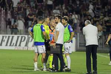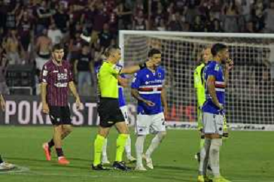 22 06 2025 - Salerno. Stadio Arechi. Campionato Serie B. Playout Ritorno. Salernitana-Sampdoria Nella foto l'arbitro Doveri sospende la partita Foto Giuseppe Cuozzo/Agenzia Liverani - AGENZIA ALDO LIVERANI SAS