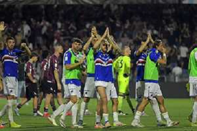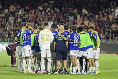 22 06 2025 - Salerno. Stadio Arechi. Campionato Serie B. Playout Ritorno. Salernitana-Sampdoria Nella foto giocatori Sampdoria si riuniscono Foto Giuseppe Cuozzo/Agenzia Liverani - AGENZIA ALDO LIVERANI SAS