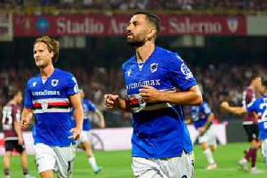 TVEM June 22, 2025 Salerno, Italy - US Salernitana 1919 vs UC Sampdoria - Italian Soccer Serie BKT Playout match 2024/25 - Arechi Stadium. In the pic: Massimo Coda of UC Sampdoria celebrates after scoring a goal ©TVEM Emmanuele Mastrodonato - AGENZIA ALDO LIVERANI SAS