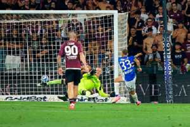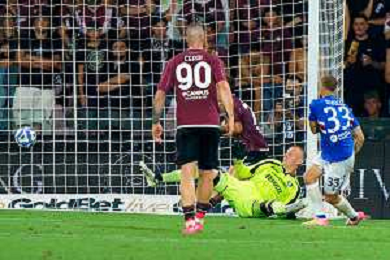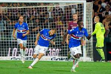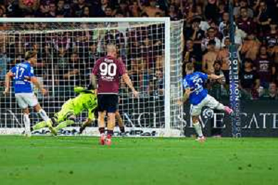 TVEM June 22, 2025 Salerno, Italy - US Salernitana 1919 vs UC Sampdoria - Italian Soccer Serie BKT Playout match 2024/25 - Arechi Stadium. In the pic: Giuseppe Sibilli of UC Sampdoria scores a goal of 0-2 ©TVEM Emmanuele Mastrodonato - AGENZIA ALDO LIVERANI SAS