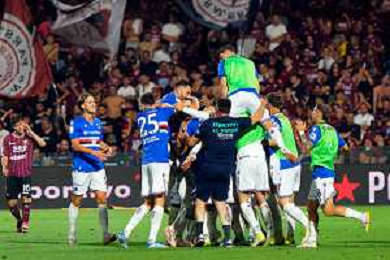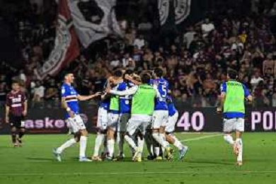 TVEM June 22, 2025 Salerno, Italy - US Salernitana 1919 vs UC Sampdoria - Italian Soccer Serie BKT Playout match 2024/25 - Arechi Stadium. In the pic: players of UC Sampdoria celebrates ©TVEM Emmanuele Mastrodonato - AGENZIA ALDO LIVERANI SAS