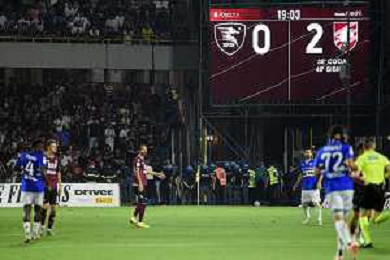 22 06 2025 - Salerno. Stadio Arechi. Campionato Serie B. Playout Ritorno. Salernitana-Sampdoria Nella foto Daniele Doveri sospende la partita Foto Giuseppe Cuozzo/Agenzia Liverani - AGENZIA ALDO LIVERANI SAS