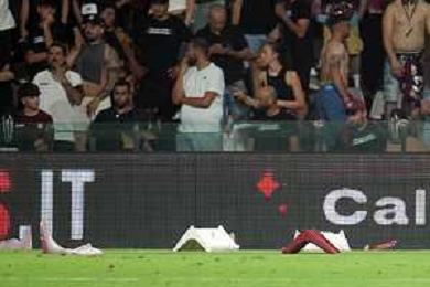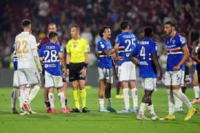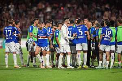 TVPM SALERNITANA SAMPDORIA NELLA FOTO: SAMPDORIA LASCIA IL CAMPO DOPO LA SOSPENSIONE DELLA PARTITA FOTO MOSCA \ AGENZIA LIVERANI - AGENZIA ALDO LIVERANI SAS - Salernitana vs Sampdoria - Playout Campionato Calcio Serie BKT 22.06.2025