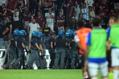 TVPM SALERNITANA SAMPDORIA NELLA FOTO: FORZE DELL'ORDINE IN CAMPO FOTO MOSCA \ AGENZIA LIVERANI - AGENZIA ALDO LIVERANI SAS - Salernitana vs Sampdoria - Playout Campionato Calcio Serie BKT 22.06.2025
