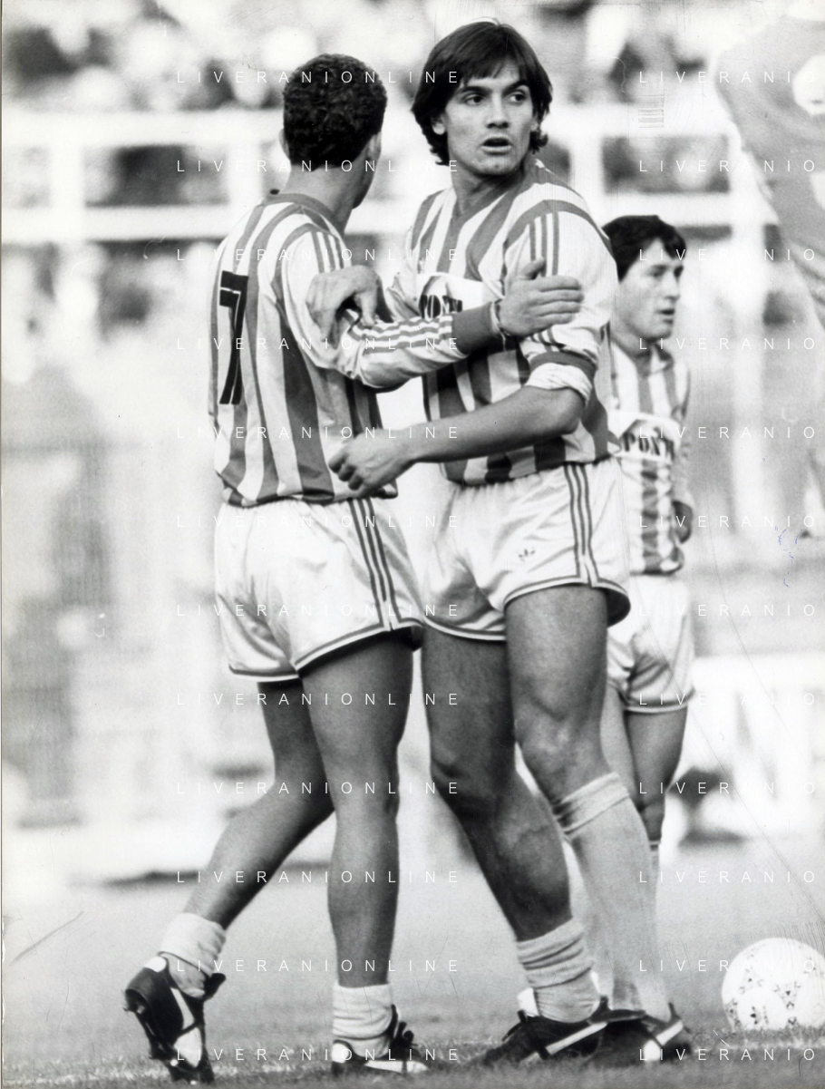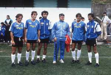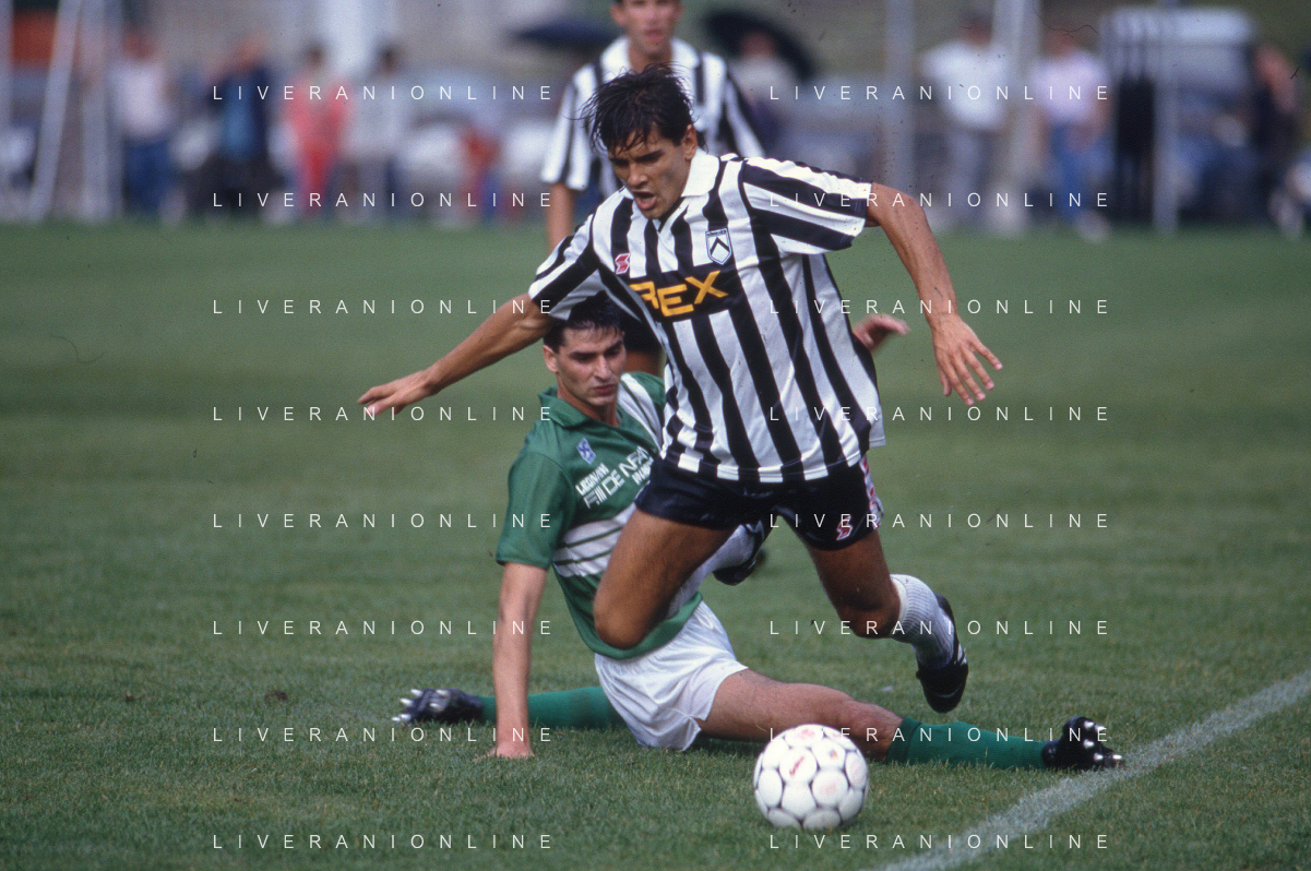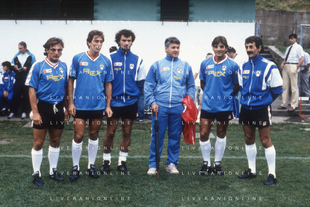 DIAP-RETROSPETTIVA RODOLFO VANOLI CALCIATORE NELLA FOTO FULVIO SIMONINI-LUCA MATTEI-ANDREA BRUNIERA-BRUNO MAZZIA-RODOLFO VANOLI ED EMIDIO ODDI RITIRO UDINESE CALCIO ANNO 1991-92 AG ALDO LIVERANI SAS