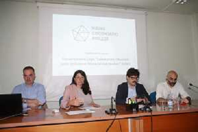 IMOLA 30 06 2025 NUOVO CIRCONDARIO DI IMOLA conferenza stampa dal titolo 'Presentazione naming e logo Laboratorio museale sulle istituzioni manicomiali presso il padiglione 10/12 Osservanza ed esito percorso partecipato'.NELLA FOTO DA SINISTRA SERGIO MACCAGNANI DIRETTORE GENERALE NUOVO CIRCONDARIO IMOLESE,VICE SINDACO DI IMOLA ELISA SPADA , PIETRO TARABORELLI HIBOU HERITAGE END DIGITAL HUMANITIES E FEDERICO BORREANI PROJECT MANAGER BAM foto gianni sanna-ag aldo liverani sas