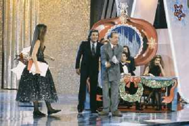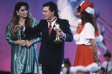 DIAP-RETROSPETTIVA ALBANO CARRISI E ROMINA POWER CANTANTI NELLA FOTO ROMINA POWER E ALBANO CARRISI NELLA TRASMISSIONE TELEVISIVA “BUON NATALE“ NELL'ANNO 1991 AG ALDO LIVERANI SAS