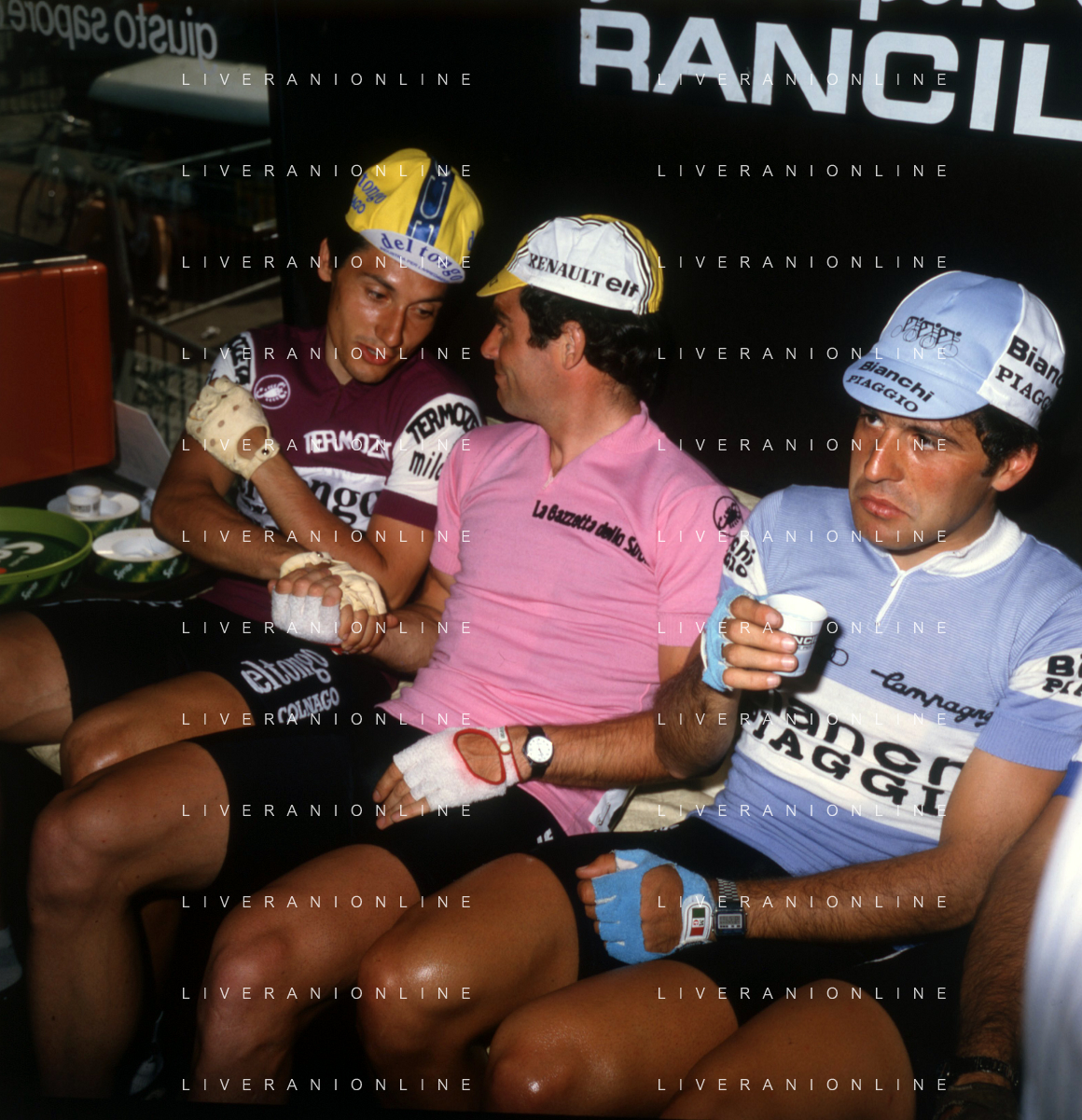 COL -RETROSPETTIVA SILVANO CONTINI CICLISTA NELLA FOTO SILVANO CONTINI CON BERNARD HINAULE E GIUSEPPE SARONNI ARCHIVIO GIOVANNI LIVERANI-AG ALDO LIVERANI SAS