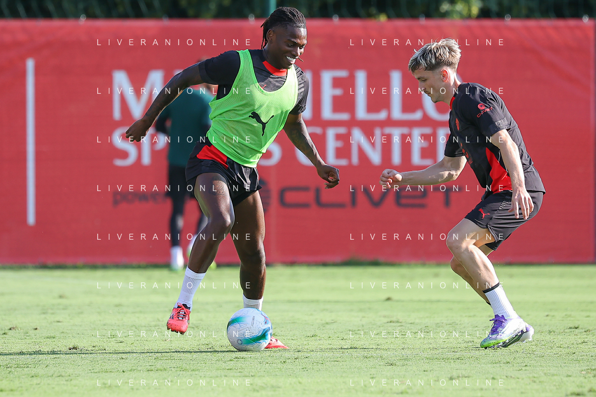 TVRCOR Raduno Milan nella foto Rafael Leao e Alexis Saelemaekers allenamento Milan Milanello Carnago (VA) 07-07-2025 Raduno del Milan presso il centro sportivo di Milanello per l’inizio degli allenamenti in vista della stagione 2025-2026 foto Roberta Corradin/ag. Aldo Liverani sas- AGENZIA ALDO LIVERANI SAS