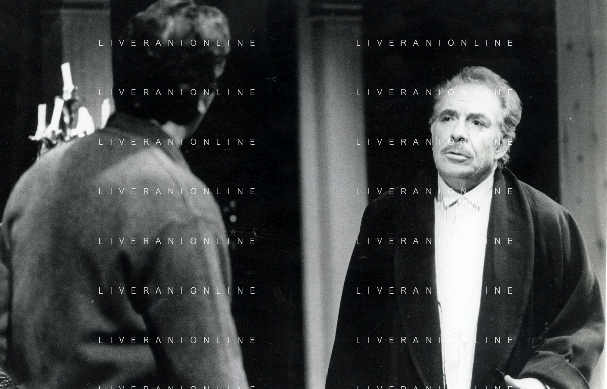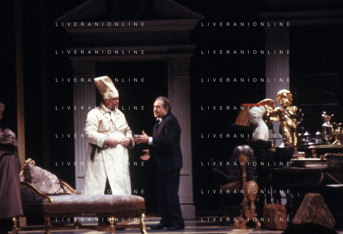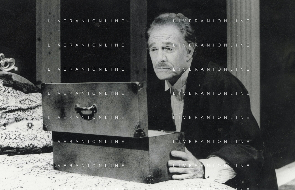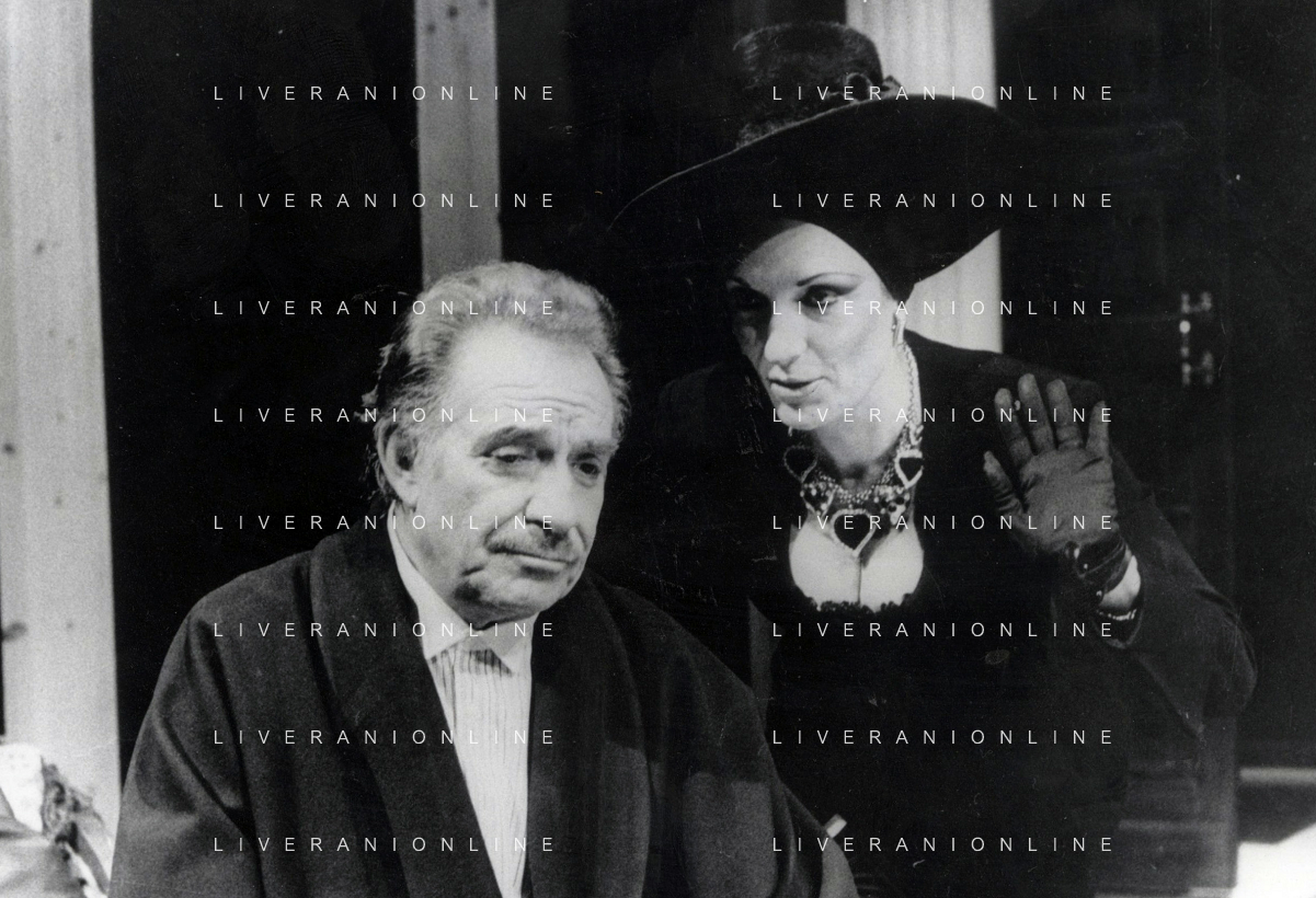 DIAP-RETROSPETTIVA UGO TOGNAZZI ATTORE NELLA FOTO UGO TOGNAZZI CON FIORETTA MARI NELLA COMMEDIA TEATRALE “L'AVARO “ A MILANO NELL'ANNO 1988 AG ALDO LIVERANI SAS