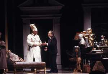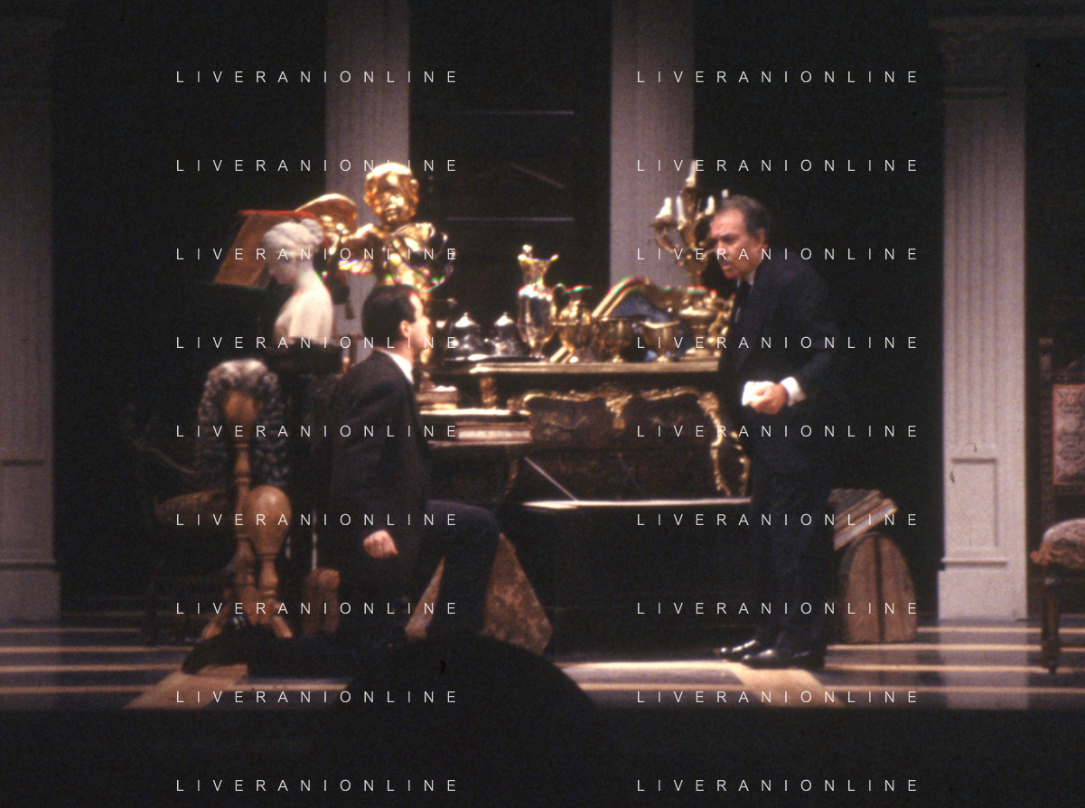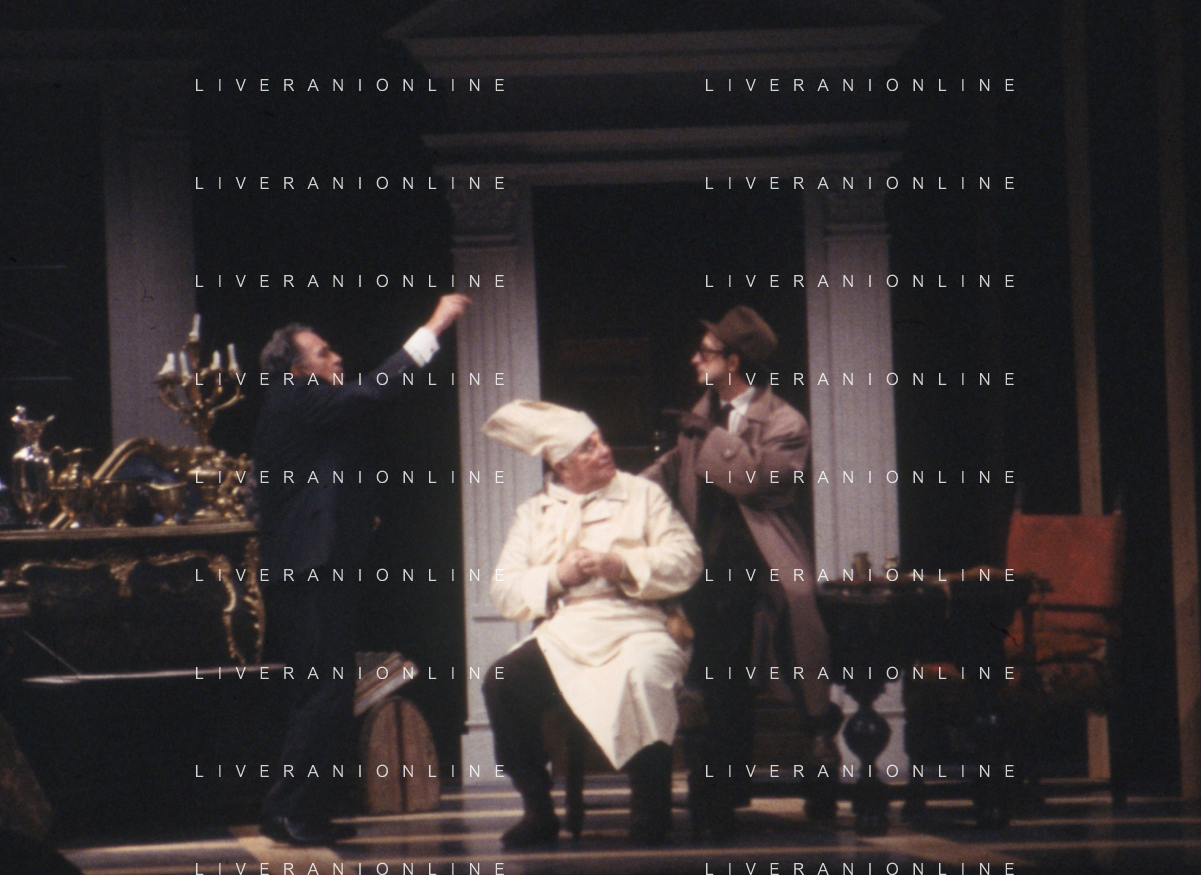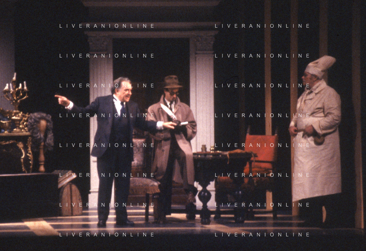 DIAP-RETROSPETTIVA UGO TOGNAZZI ATTORE NELLA FOTO UGO TOGNAZZI CON FIORETTA MARI NELLA COMMEDIA TEATRALE “L'AVARO “ A MILANO NELL'ANNO 1988 AG ALDO LIVERANI SAS