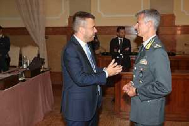 IMOLA 10 07 2025 CONFERENZA STAMPA GUARDIA DI FINANZA DI BOLOGNA E POLIZIA LOCALE DEL NUOVO CIRCONDARIO IMOLESE:ATTIVITA' CONGIUNTA NEL SETTORE DEGLI AFFITTI BREVI NELLA MAGGIOR PARTE DEI CASI SENZA ALCUN TIPO DI AUTORIZZAZIONE.NELLA FOTO SINDACO DI IMOLA MARCO PANIERI E COMMANDANTE PROVINCIALE DELLA GUARDIA DI FINANZA DI BOLOGNA GENERALE GIOVANNI PARASCANDOLO ©SANNA - AGENZIA ALDO LIVERANI SAS