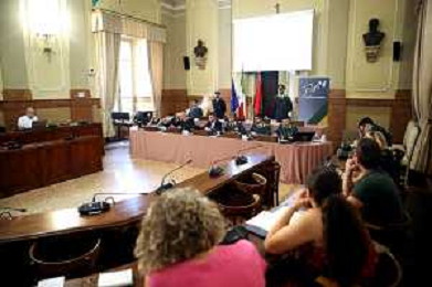 IMOLA 10 07 2025 CONFERENZA STAMPA GUARDIA DI FINANZA DI BOLOGNA E POLIZIA LOCALE DEL NUOVO CIRCONDARIO IMOLESE:ATTIVITA' CONGIUNTA NEL SETTORE DEGLI AFFITTI BREVI NELLA MAGGIOR PARTE DEI CASI SENZA ALCUN TIPO DI AUTORIZZAZIONE.NELLA FOTO DA SINISTRA ASSESSORE ELENA PENAZZI,ISPETTORE BRIGHI POLIZIA LOCALE,COMMANDANTE DELLA POLIZIA LOCALE MASSIMILIANO GALLONI SINDACO DI IMOLA MARCO PANIERI COMMANDANTE PROVINCIALE DELLA GUARDIA DI FINANZA DI BOLOGNA GENERALE GIOVANNI PARASCANDOLO,CAPITANO SANTOLO PERROTTA COMM GDF IMOLA CON I GIORNALISTI ©SANNA - AGENZIA ALDO LIVERANI SAS
