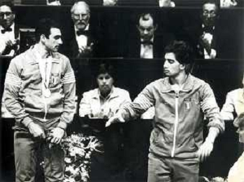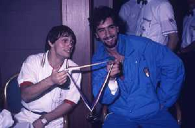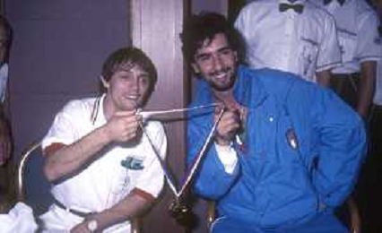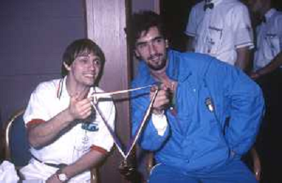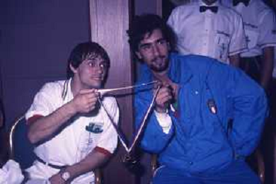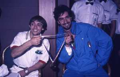 DIAP-RETROSPETTIVA STEFANO CERIONI SCHERMA NELLA FOTO STEFANO CERIONI ALLE OLIMPIADI DI SEUL NELL'ANNO 1988 CON VINCENZO MAENZA AG ALDO LIVERANI SAS