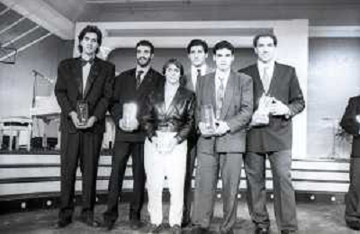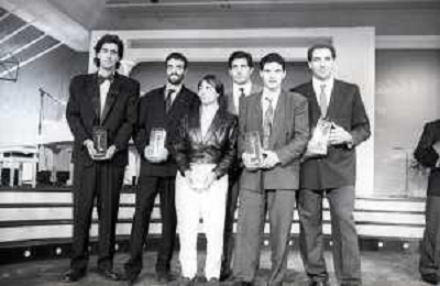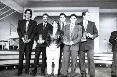 NEG-RETROSPETTIVA STEFANO CERIONI SCHERMA NELLA FOTO STEFANO CERIONI -GELINO BORDIN-VINCENAO MAENZA-FRATELLI ABBAGNALE E VINCENZO PARISI A CAMPIONE D'ITALIA NELL'ANNO 1988 AG ALDO LIVERANI SAS