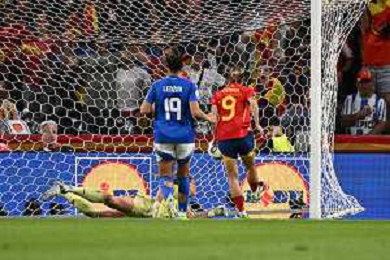 TVRG Italia vs Spagna nella foto Esther Gonzalez (Spagna) segna il gol del 3 a 1 Berna (SVI) 11-07-2025 Stadio Wankdorf Italia vs Spagna Campionati Europei femminili UEFA Euro 2025 Gruppo B - 3a giornata foto Roberto Garavaglia/Agenzia Aldo Liverani sas