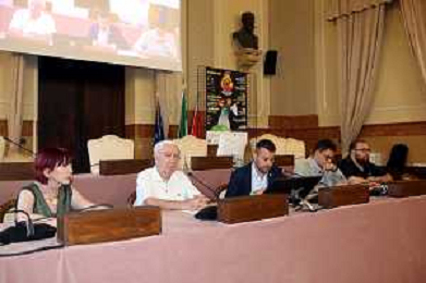 IMOLA 14 07 2025 CONFERENZA STAMPA Festival Internazionale del Folclore di Imola NELLA FOTO DA SINISTRA ULRIKE VOSS FANTON,MARCO MINGOTTI SINDACO MARCO PANIERI,ASSESSORE ALLA CULTURA GIACOMO GAMBI E RICCARDO FRANZONI ©SANNA - AGENZIA ALDO LIVERANI SAS