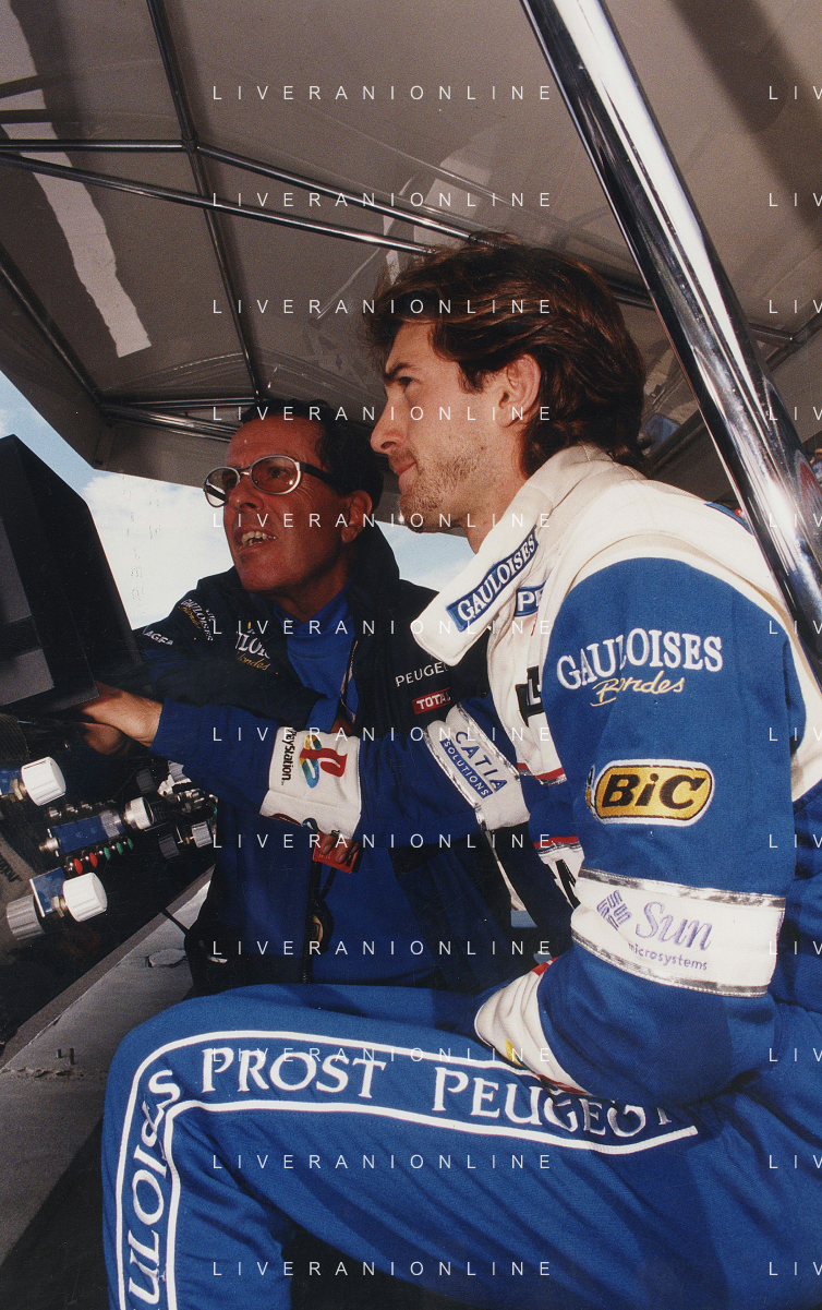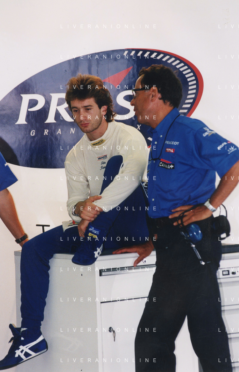 ST-RETROSPETTIVA JARNO TRULLI PILOTA F1 NELLA FOTO JARNO TRULLI CON LA PEUGEOT-PROST NELL'ANNO 1998 CON CESARE FIORIO AG CONTROLUCE-AG ALDO LIVERANI SAS
