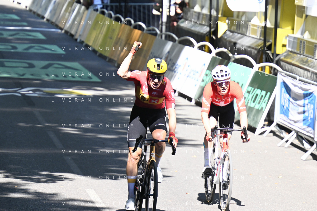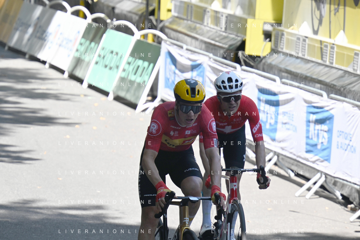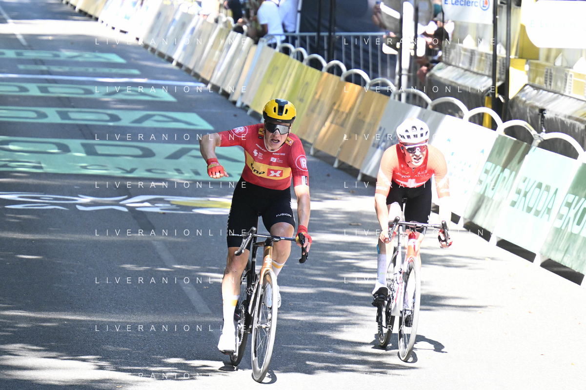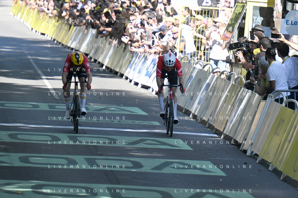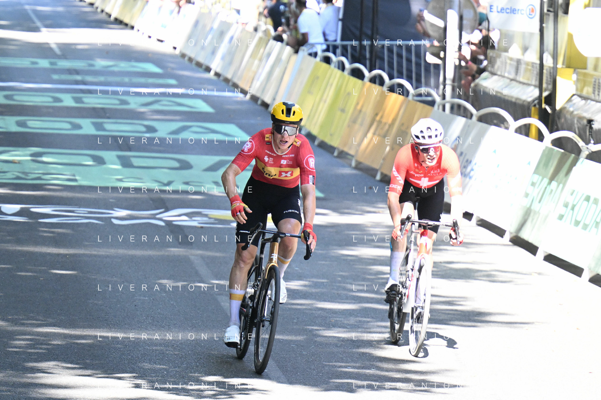 16-07-2025 Tour De France; Tappa 11 Toulouse - Toulouse; 2025, Uno X Mobility; 2025, Jayco - Alula; Abrahamsen, Jonas; Schmid, Mauro; Toulouse; ©SIROTTI - AGENZIA ALDO LIVERANI SAS