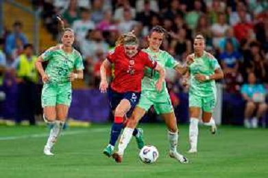 TVEM July 16, 2025 Geneva, Switzerland - Norway vs Italy - Women's UEFA Euro 2025 - Stade de Geneve. In the pic: Ingrid Engen of Norway in action against Emma Severini of Italy ©TVEM Emmanuele Mastrodonato - AGENZIA ALDO LIVERANI SAS